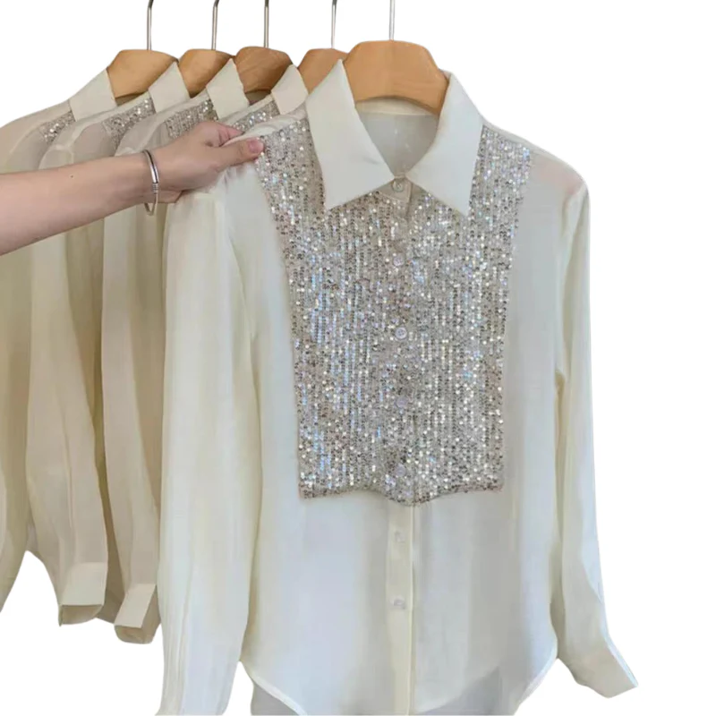 Blouse à Paillette Femme Transparente