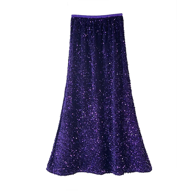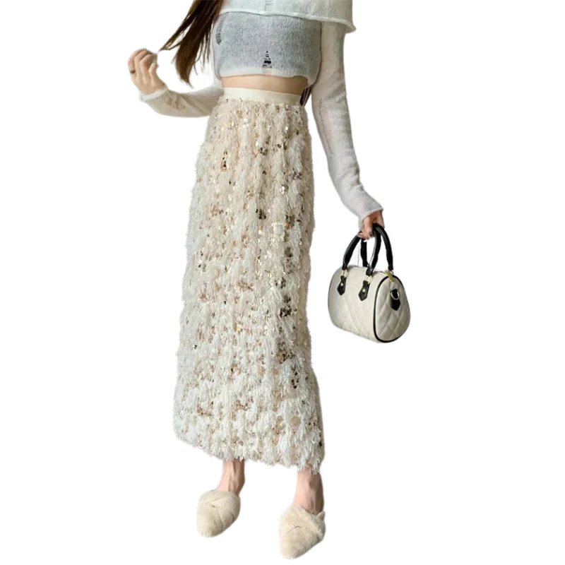 Jupe Longue Paillette Plume Laine