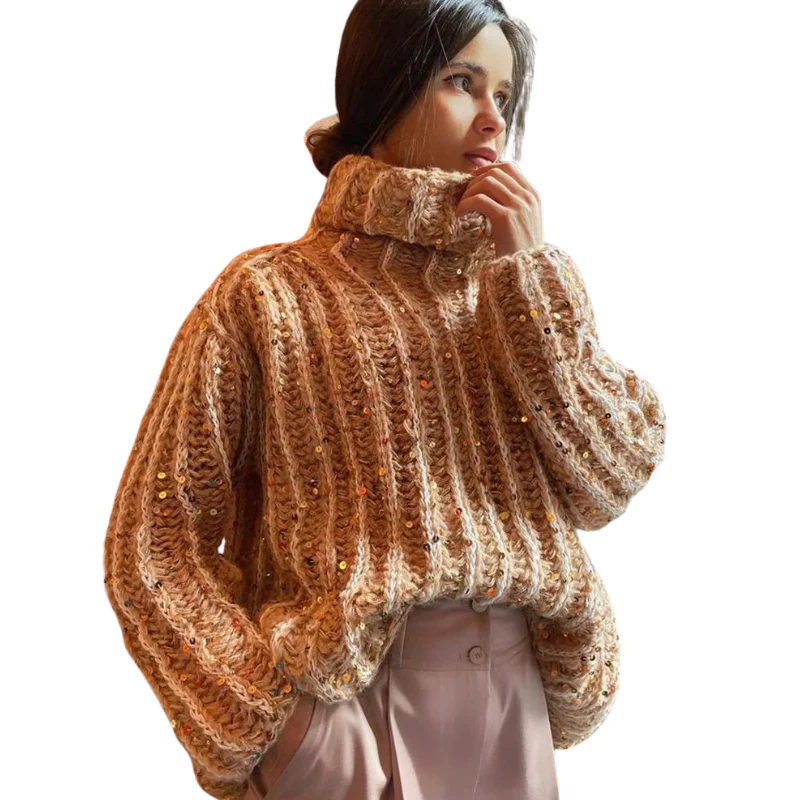 Pull Col Roulé Laine Paillette