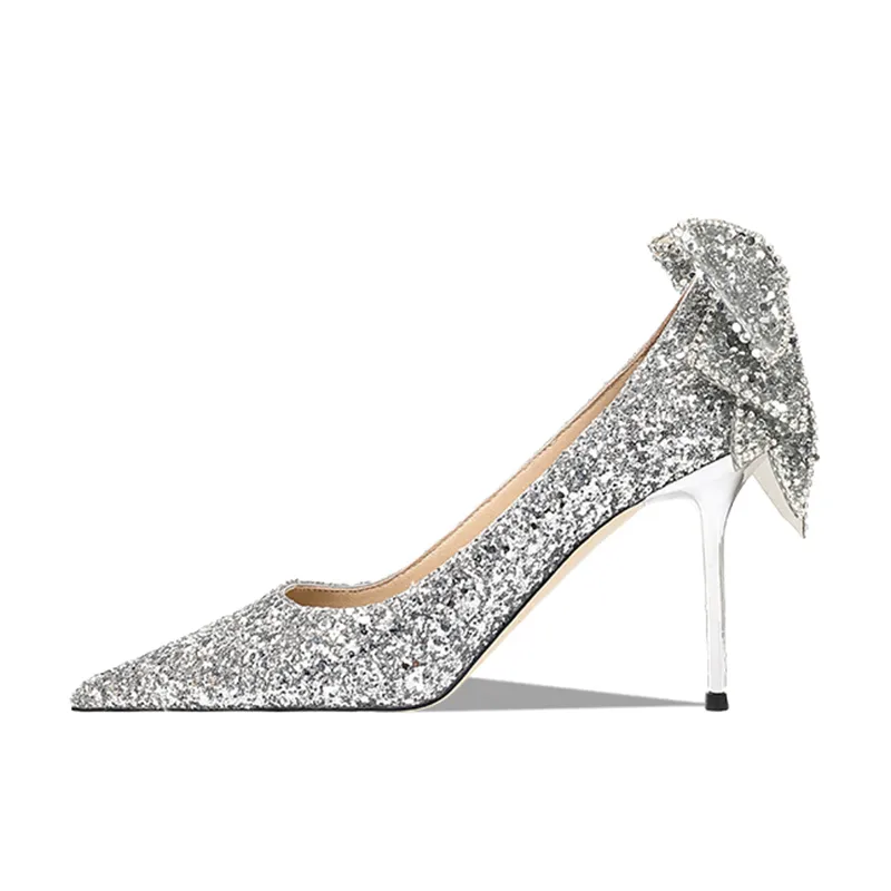 Escarpin Strass Noeud Papillon Argenté