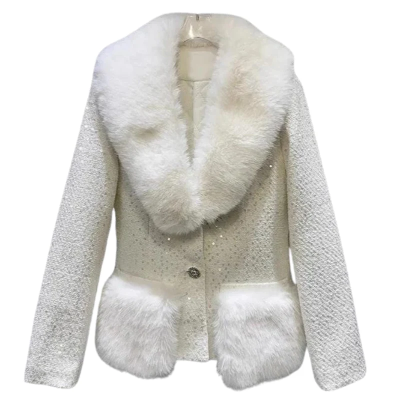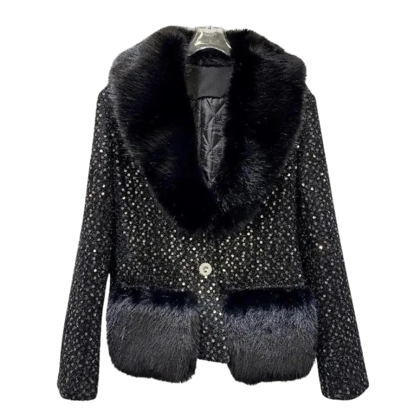 Veste Courte Paillette Fausse Fourrure