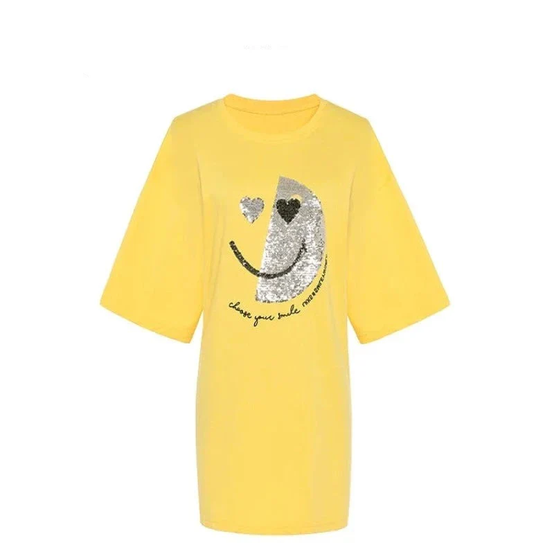T-Shirt Jaune Smiley Pailleté