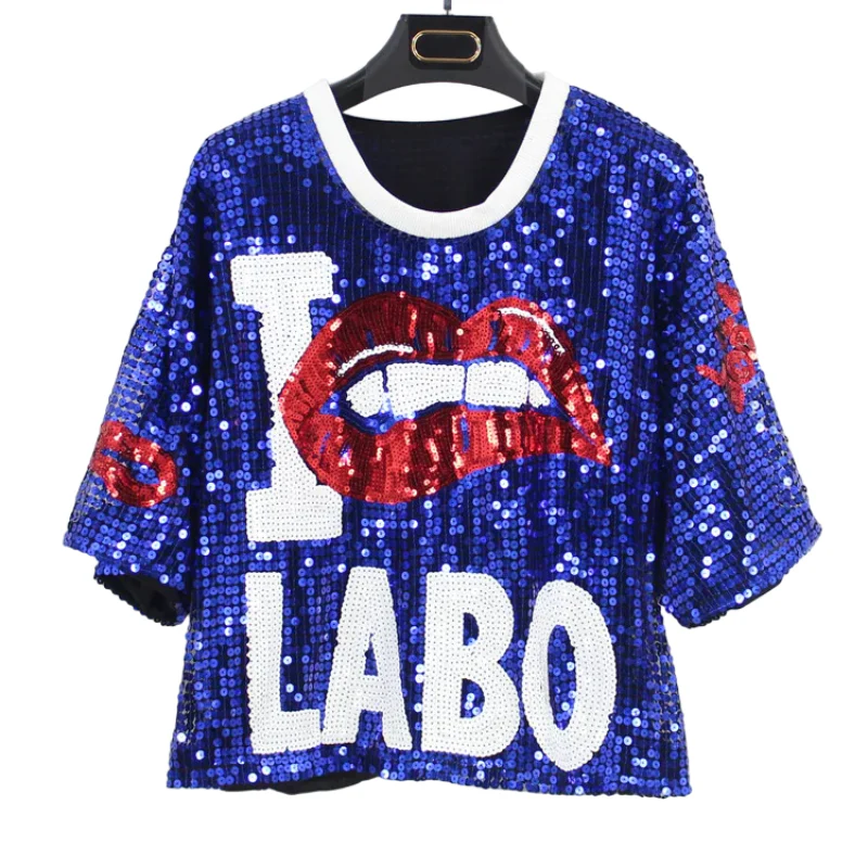 T-Shirt Paillette Décolleté Dentelle Manches Longues