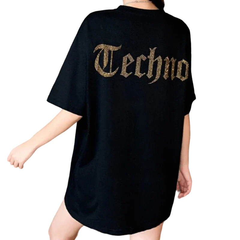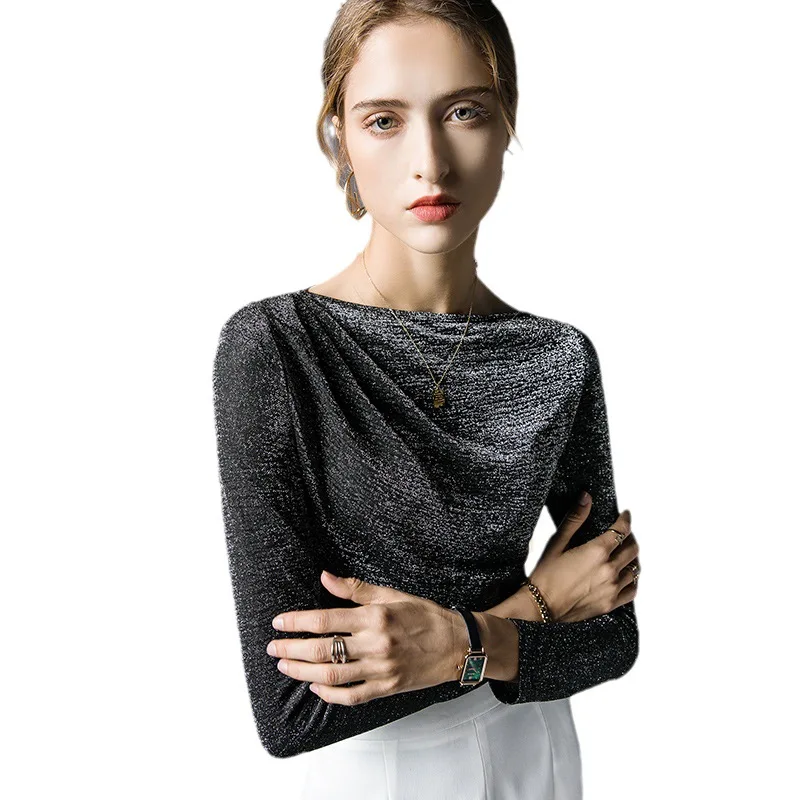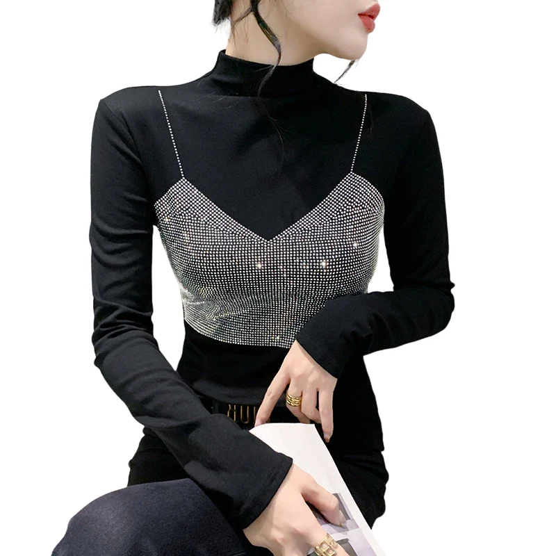 T-Shirt Paillette Elégant Manches Longues Col Transparent