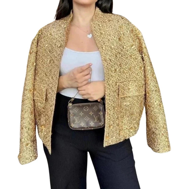 Veste Paillette Femme Doré Or