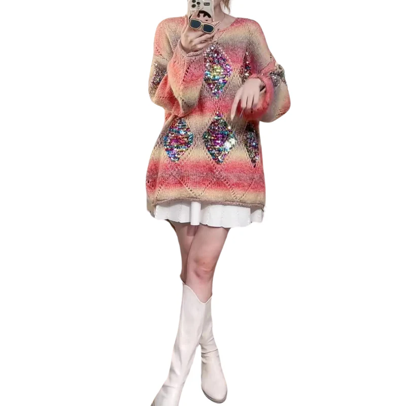 Pull Paillette Tricot Arc En Ciel