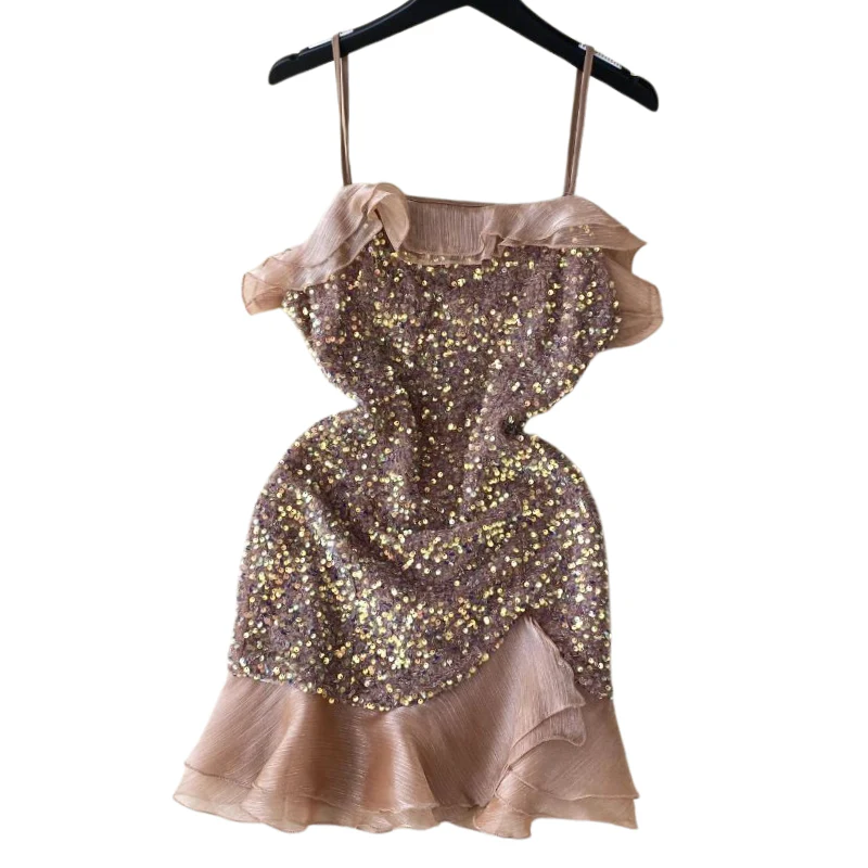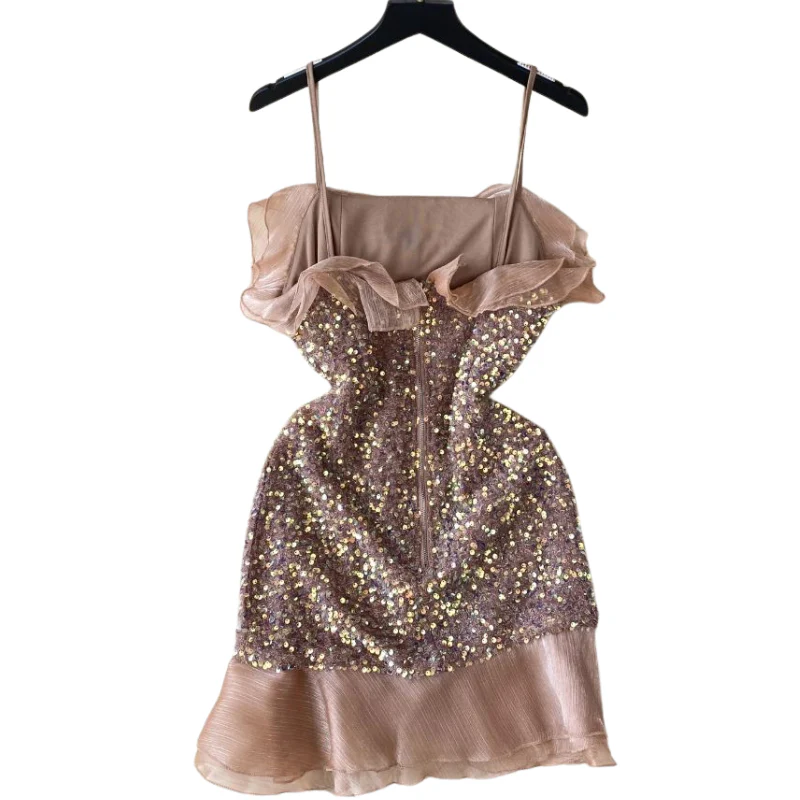 Robe Paillette Bretelle Rose Violet