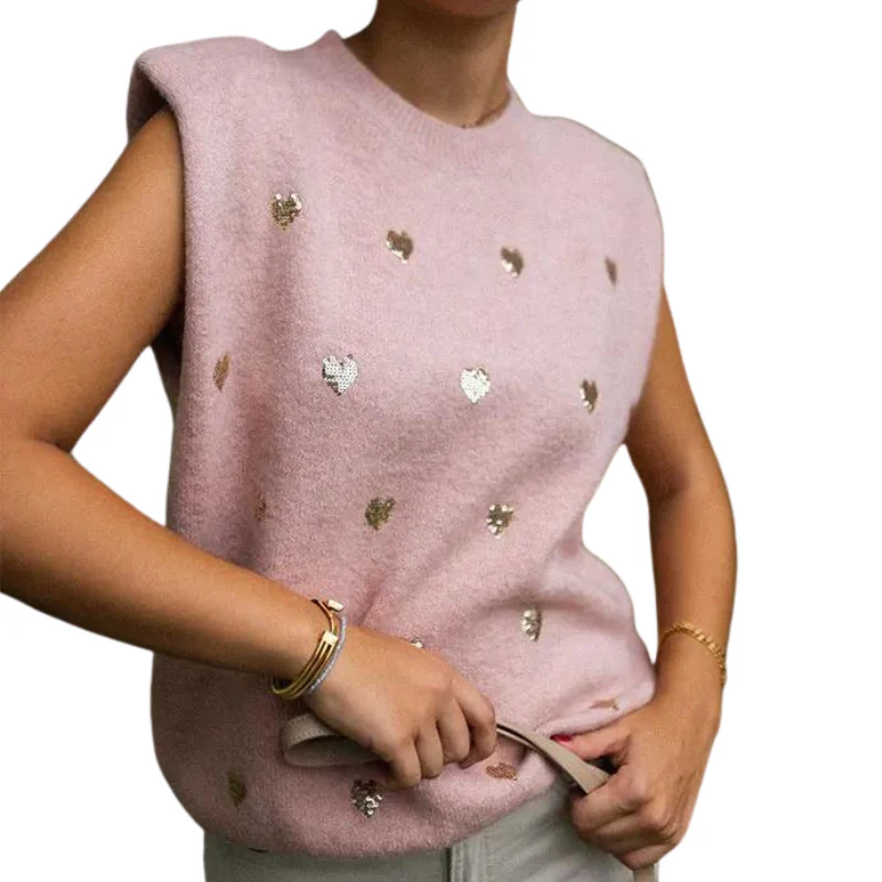 Pull Sans Manches Coeur Paillette