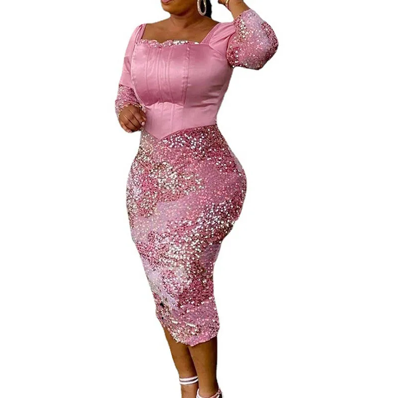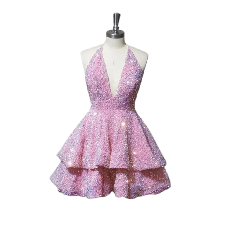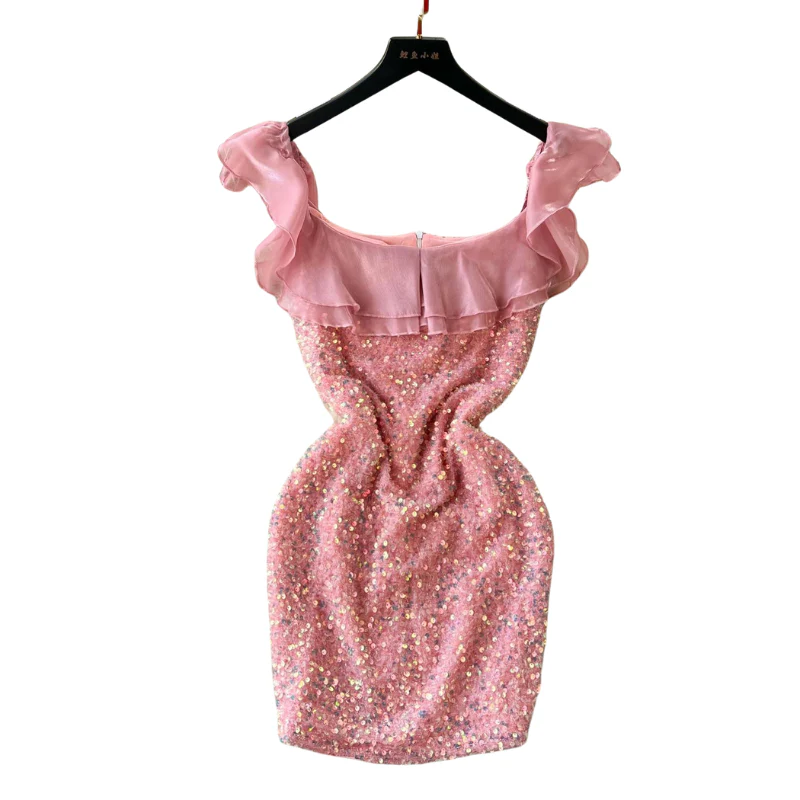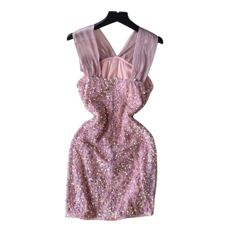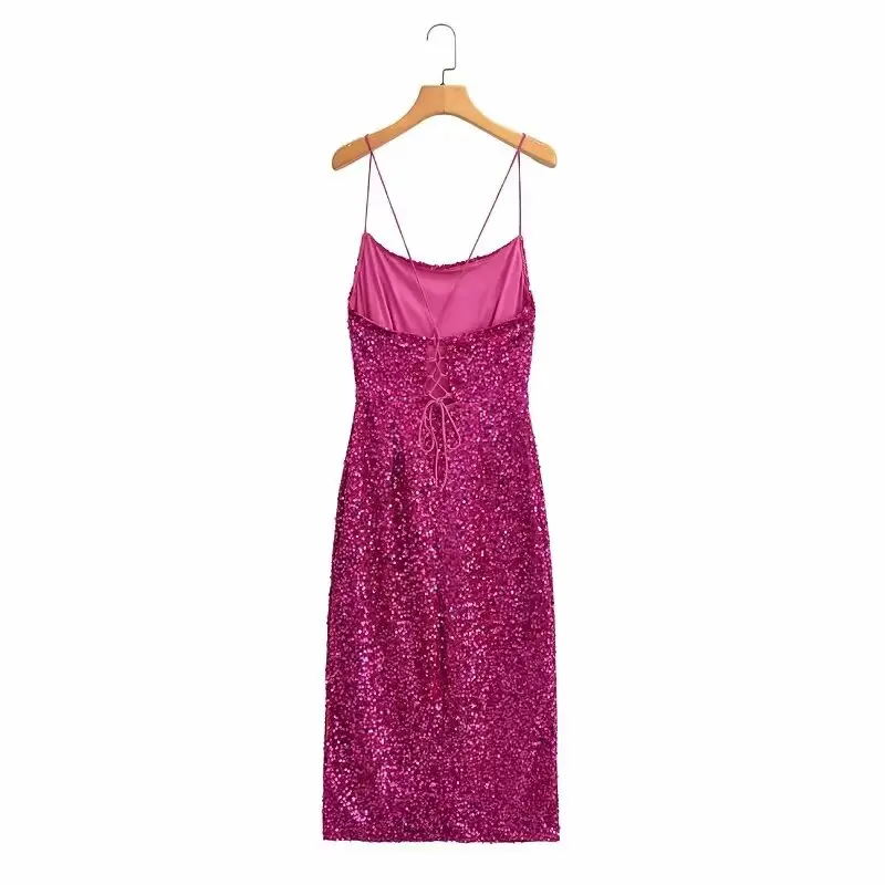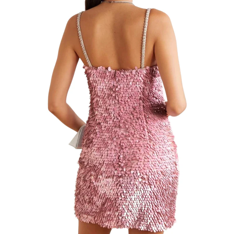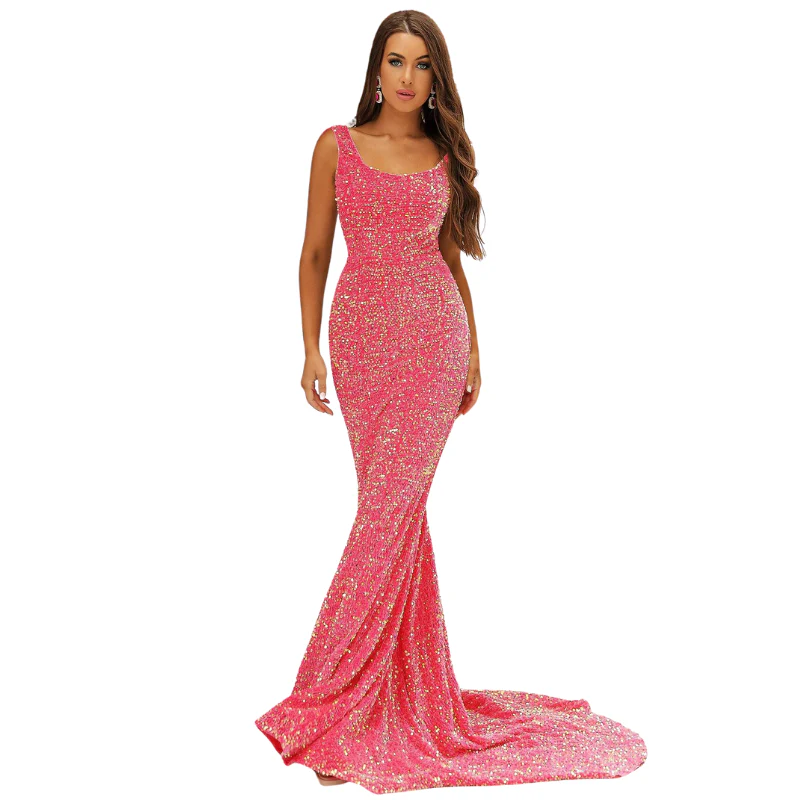 Robe Soirée Paillette Rose Longue Traine Dos Nu
