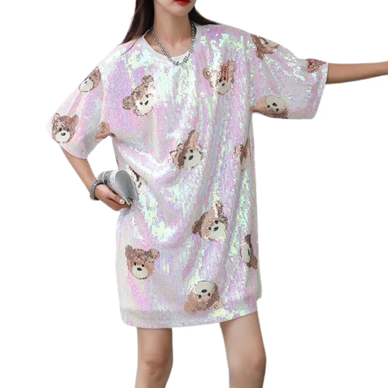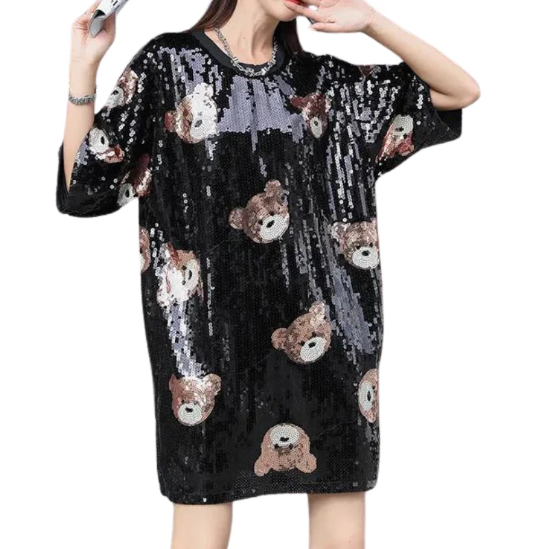 T-Shirt Paillette Col Rond Manches Courtes Femme