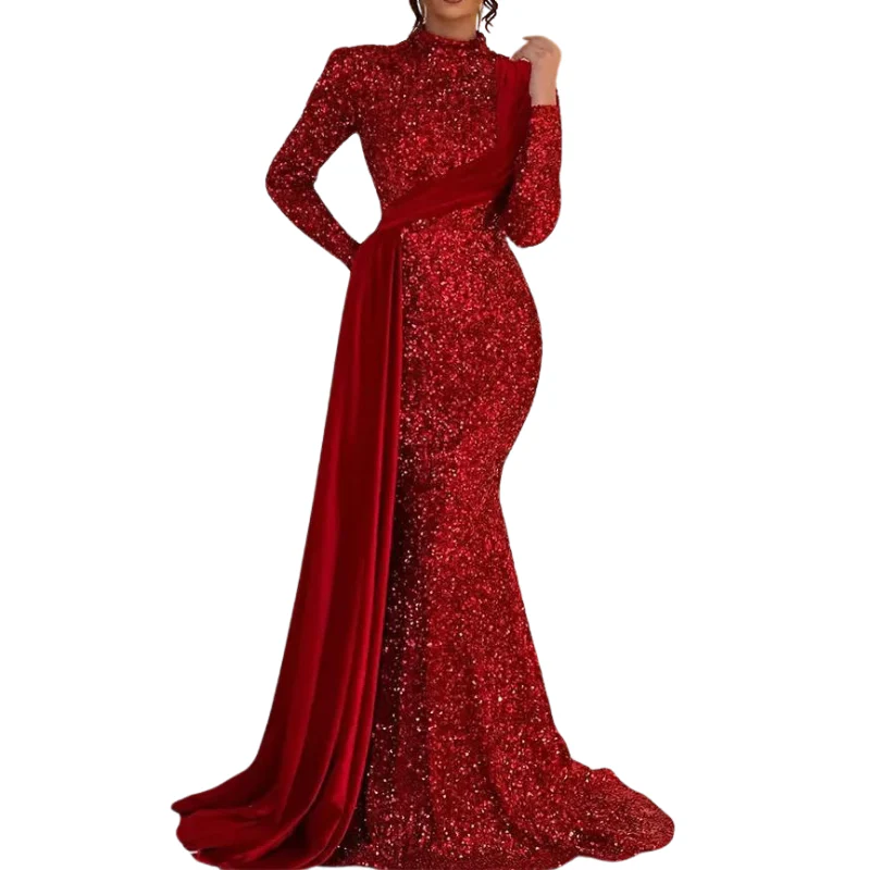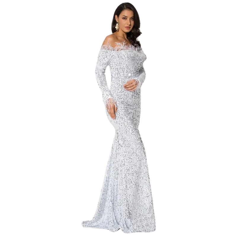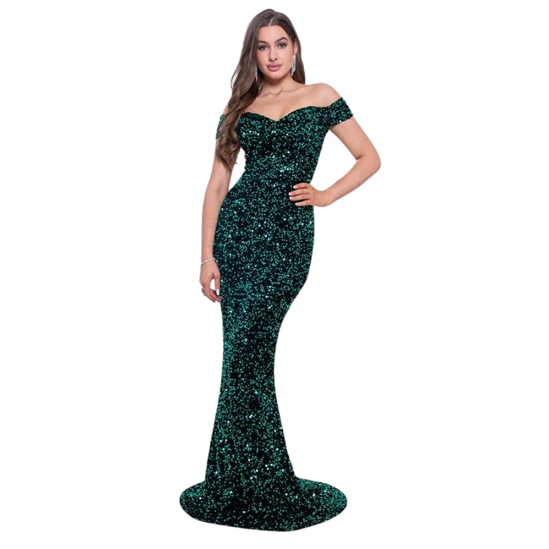 Robe de Soirée Paillette Longue Epaule Dénudée