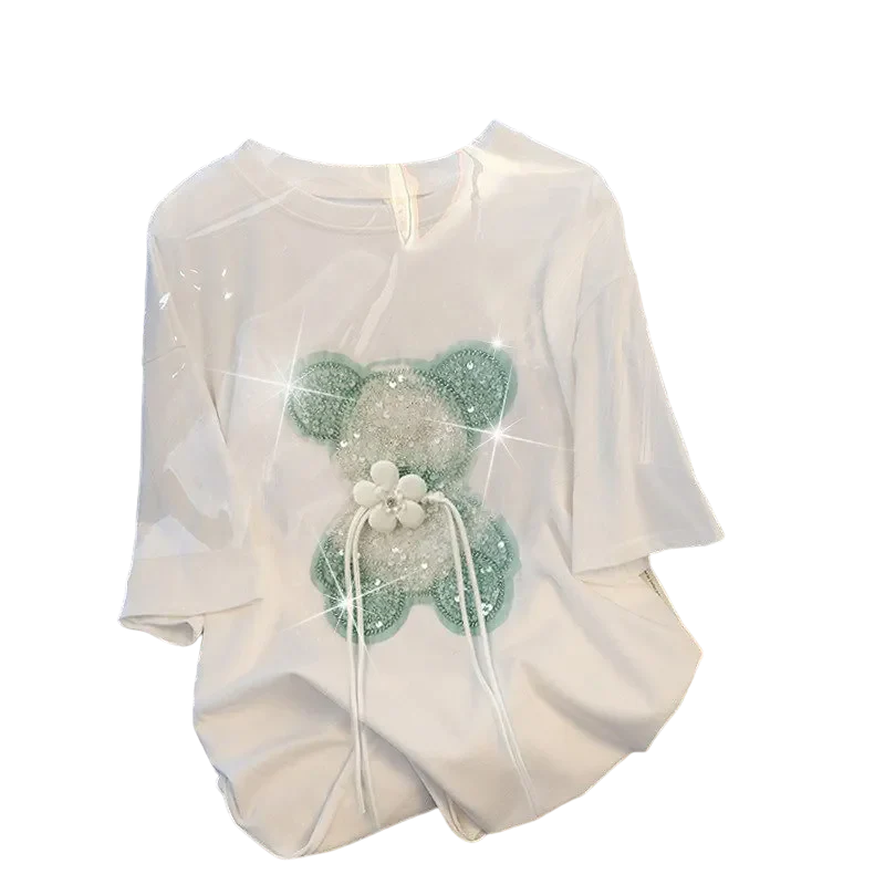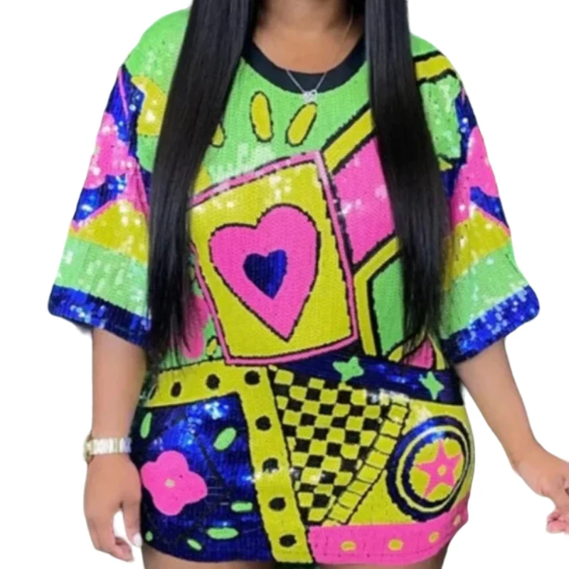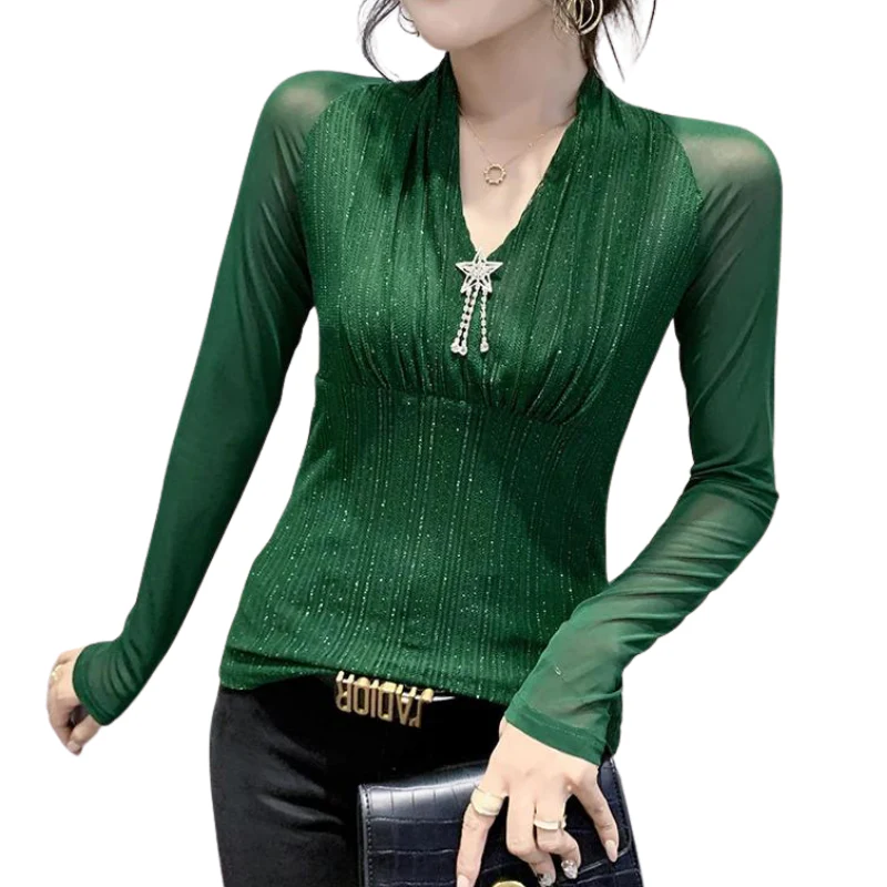 T Shirt Paillette Cache Coeur Manches Longues Femme