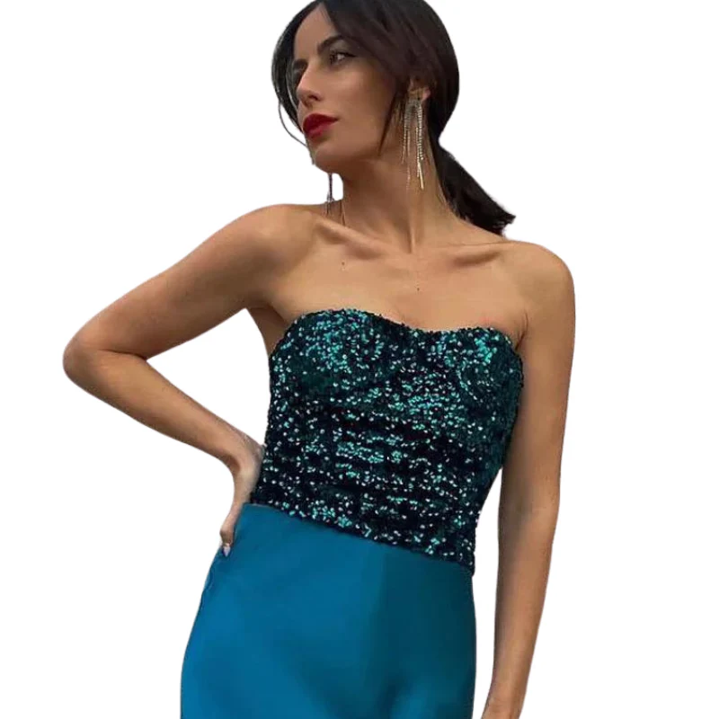 Bustier Paillette Vert Femme