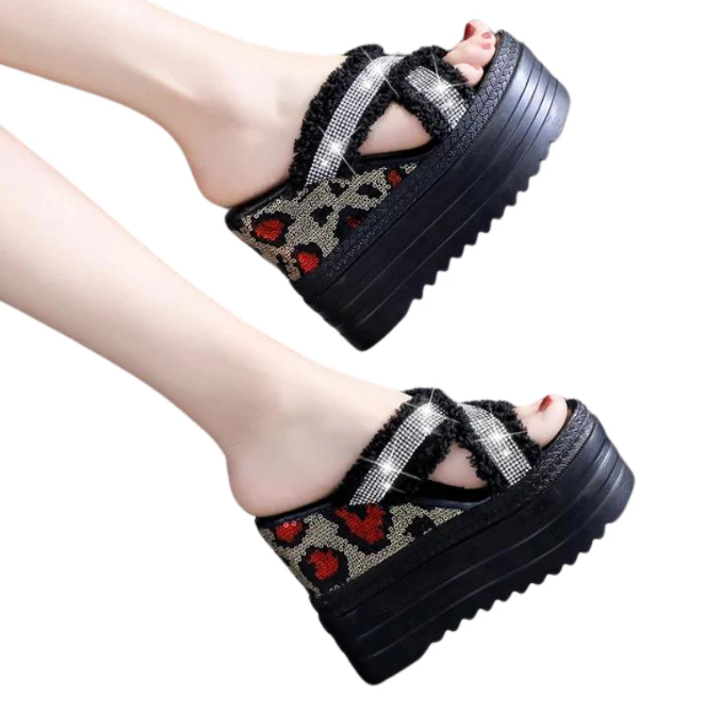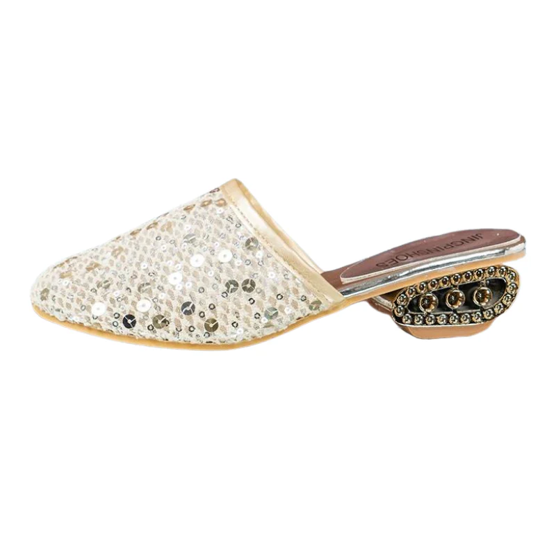 Mules Paillette Ouvertes à l’Arrière Avec Talon