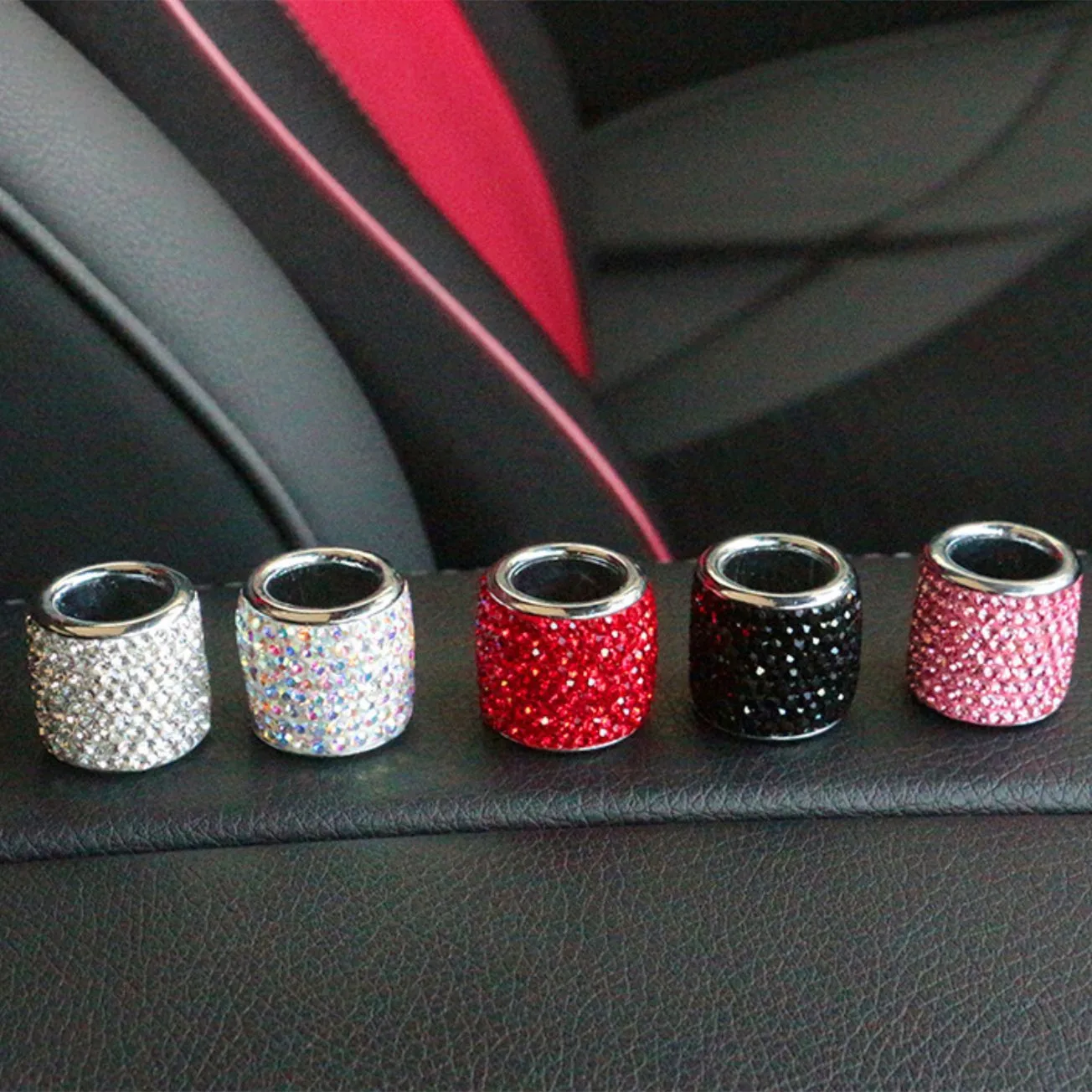Ces anneaux de voiture en strass sont parfaits pour égayer l’intérieur de votre voiture. Vous aimerez leur aspect scintillant qui ajoute une touche de luxe et de bling-bling. Ils se glissent facilement sur les bras de votre appui-tête et font briller votre intérieur. Idéal pour les amateurs de tuning et de flashy.