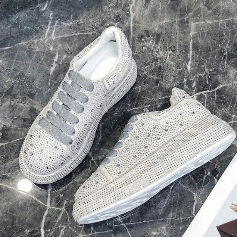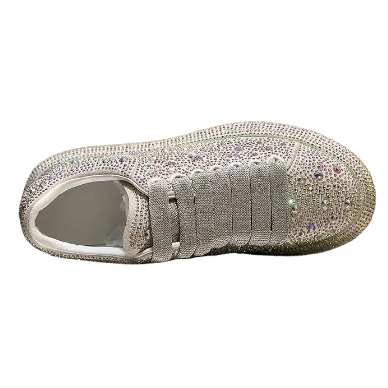 Ces Basket Strass vont apporter de l’éclat à votre tenue, elles sont idéales pour les adeptes de streetwear et de danse Hip Hop. Vous aimerez leur semelles compensées décorées de paillettes étincelantes, elles sont légères et propices à la réalisation de figures de danses.