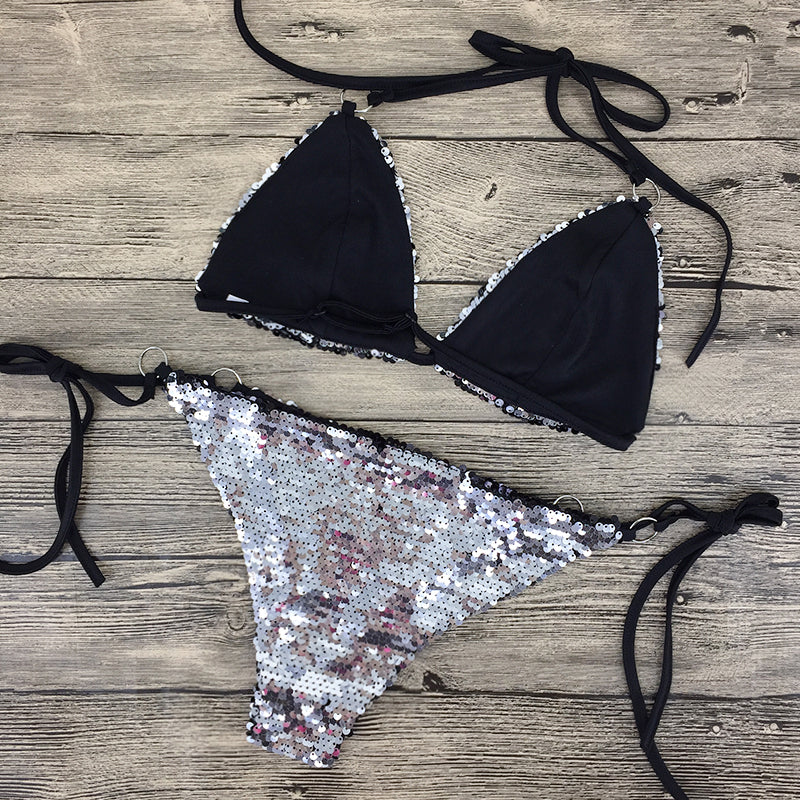 Ce bikini à paillettes est le vêtement idéal pour briller sur la plage ou au bord de la piscine cet été. Avec ses détails scintillants et sa couleur audacieuse, il ajoute une touche de glamour à votre look. Vous pouvez compter sur sa culotte ajustable et son soutien-gorge de maintien pour un confort optimal. Vous serez la sirène de la plage !