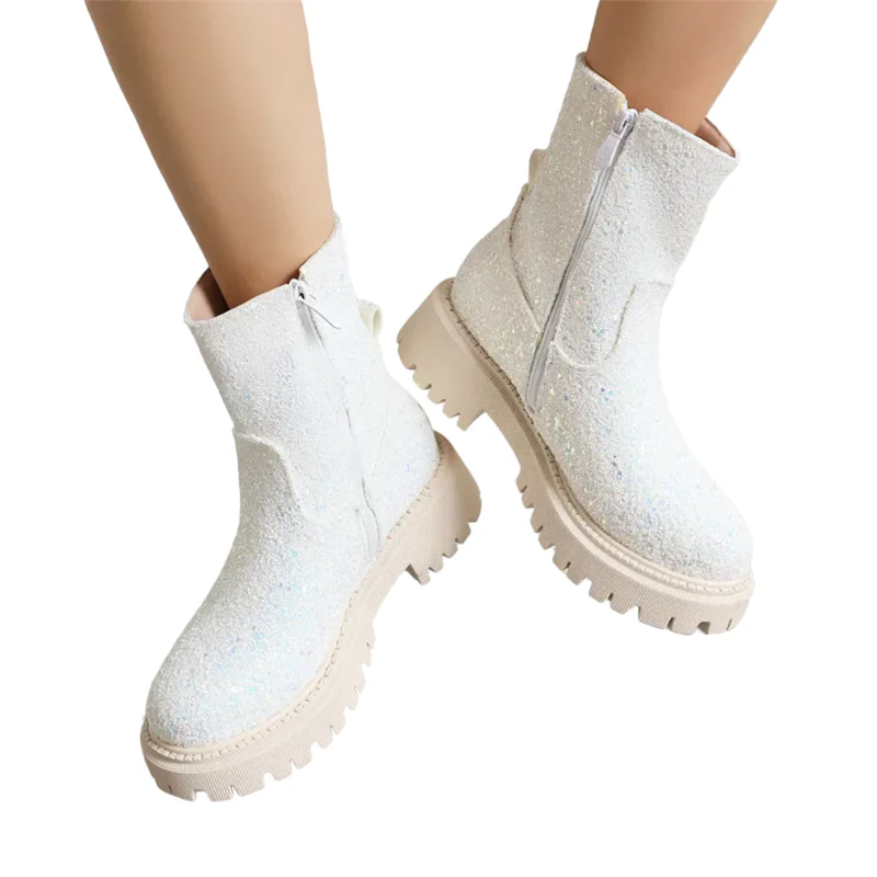 Cette botte Rangers Paillettes conserve le style robuste et militaire des rangers, avec leur semelle épaisse et leur silhouette robuste. Vous apprécierez leur fermeture à glissière et leur finition pailletée qui leur confère une touche d’éclat et de féminité. Associez les à un jean large et un haut simple pour mettre en valeur leur brillance.