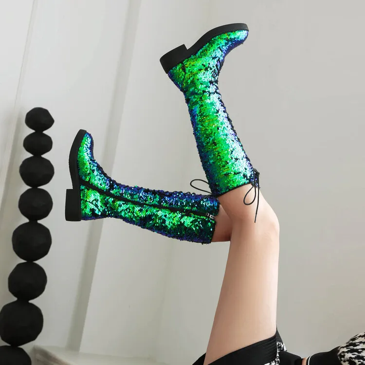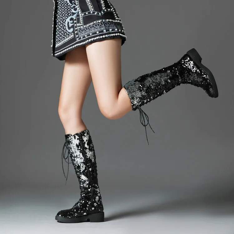 Vous adorerez le style sophistiqué et tendance de ces bottes pailletées au genou. Grâce à leur doublure en polaire, vous n’aurez pas à craindre le froid. Très travaillées, elles s’adapteront à toutes vos tenues et apporteront éclat et brillance à toutes les occasions.