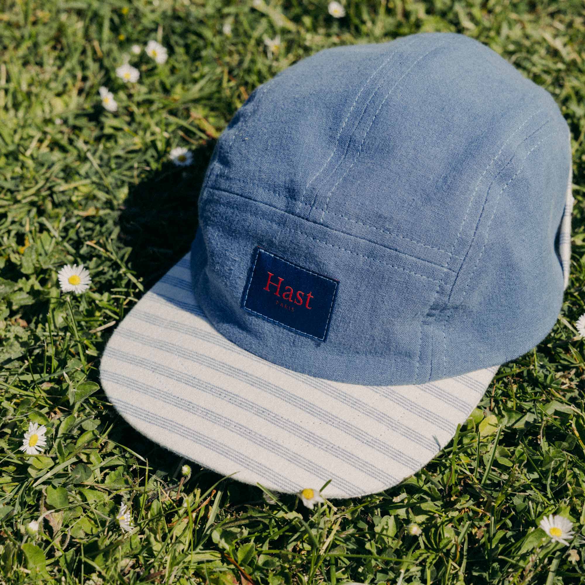 Cette casquette upcyclée en édition unique a été conçue en collaboration avec Léo Hat Craft. Elle est confectionnée pour à partir d’un tissu de chemise en lin et pour la visière à partir d’un tissu en flanelle de coton et de lin.