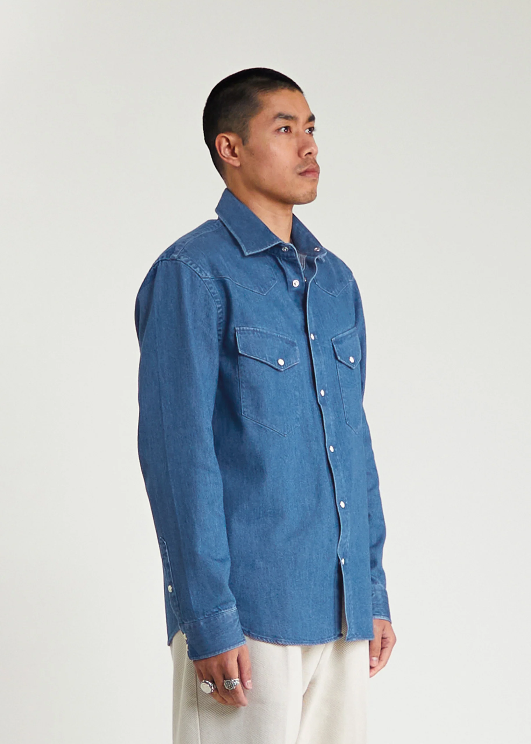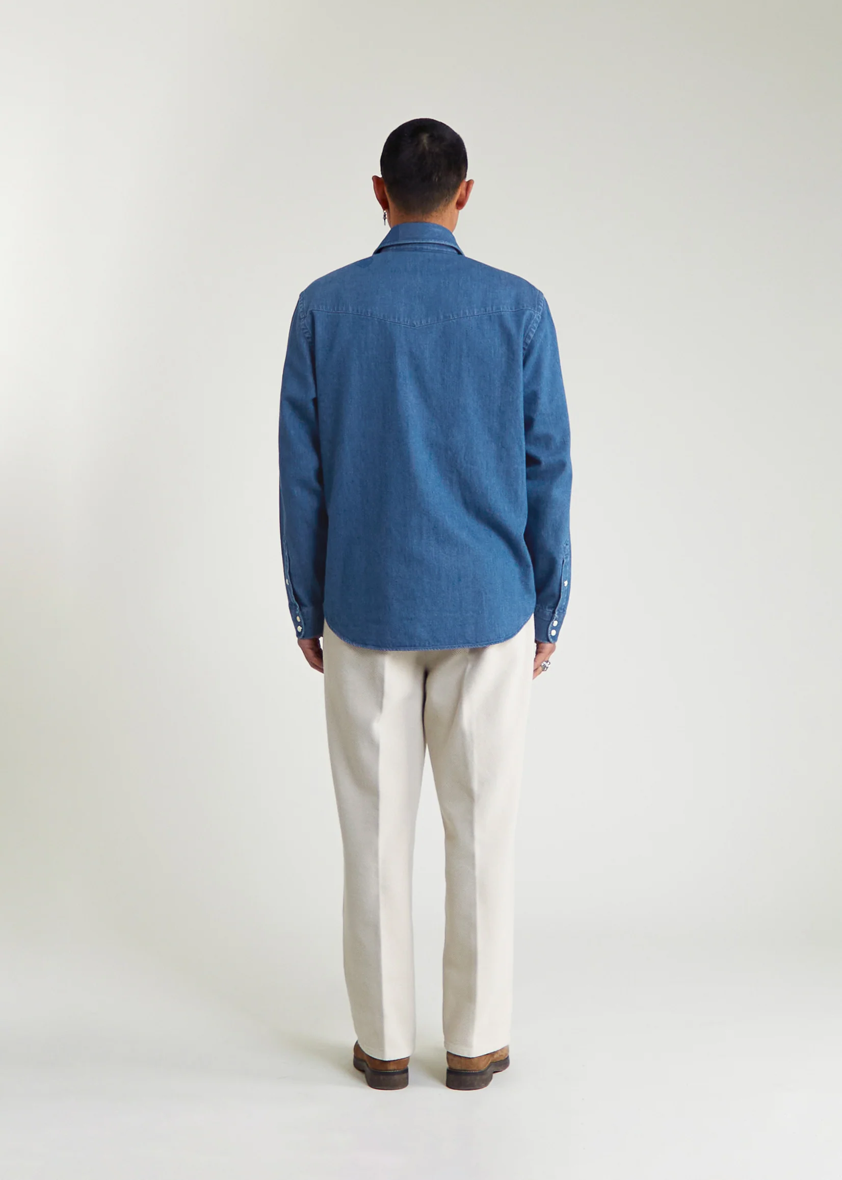 La nôtre se distingue par son tissu italien délavé à la main dense et ferme, ses poches asymétriques aux angles travaillés et son col français soigneusement proportionné.