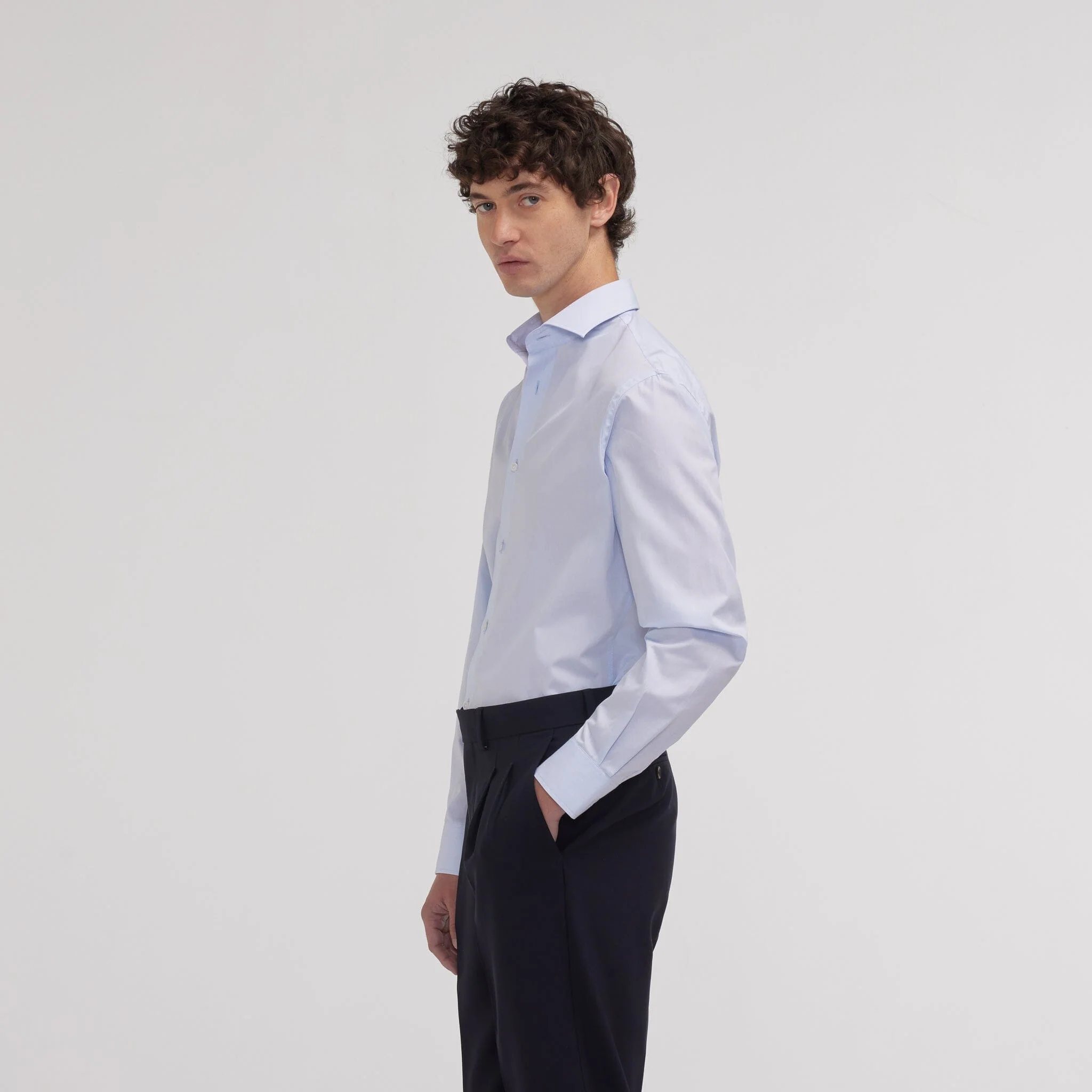 Sa coupe cintrée met en valeur les morphologies fines, tandis que notre col signature, pensé pour convenir à tous, avec ou sans cravate, apporte une touche de raffinement discret.