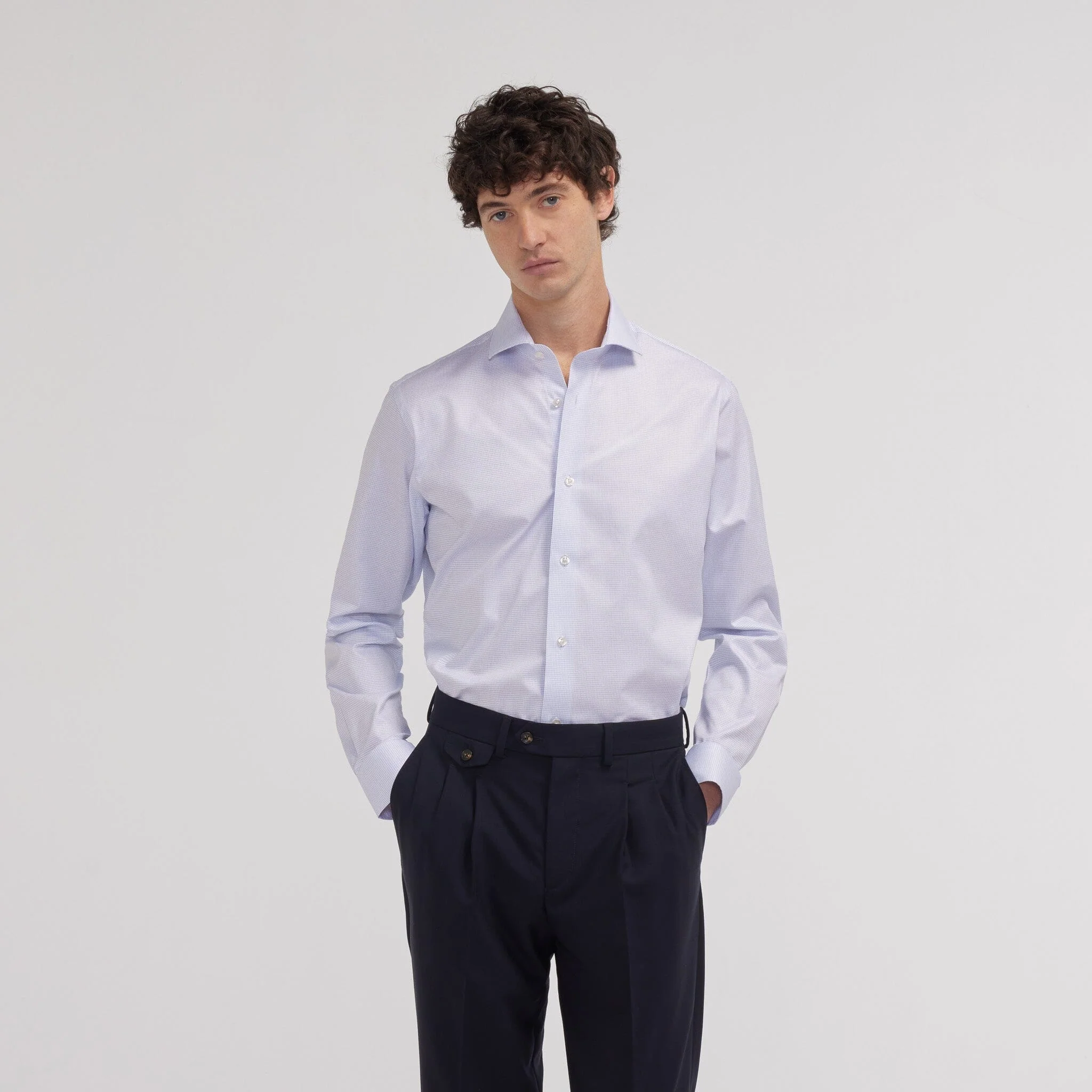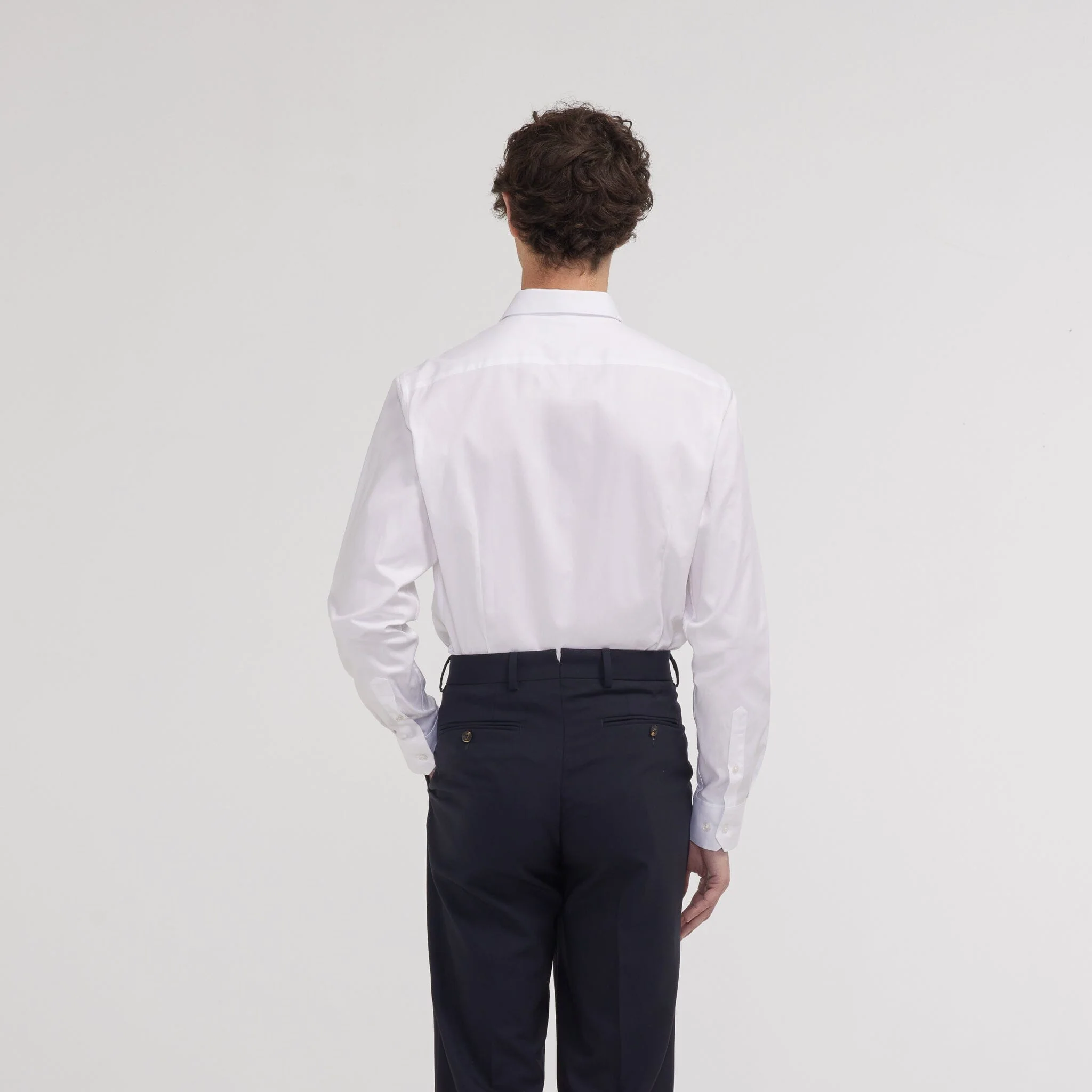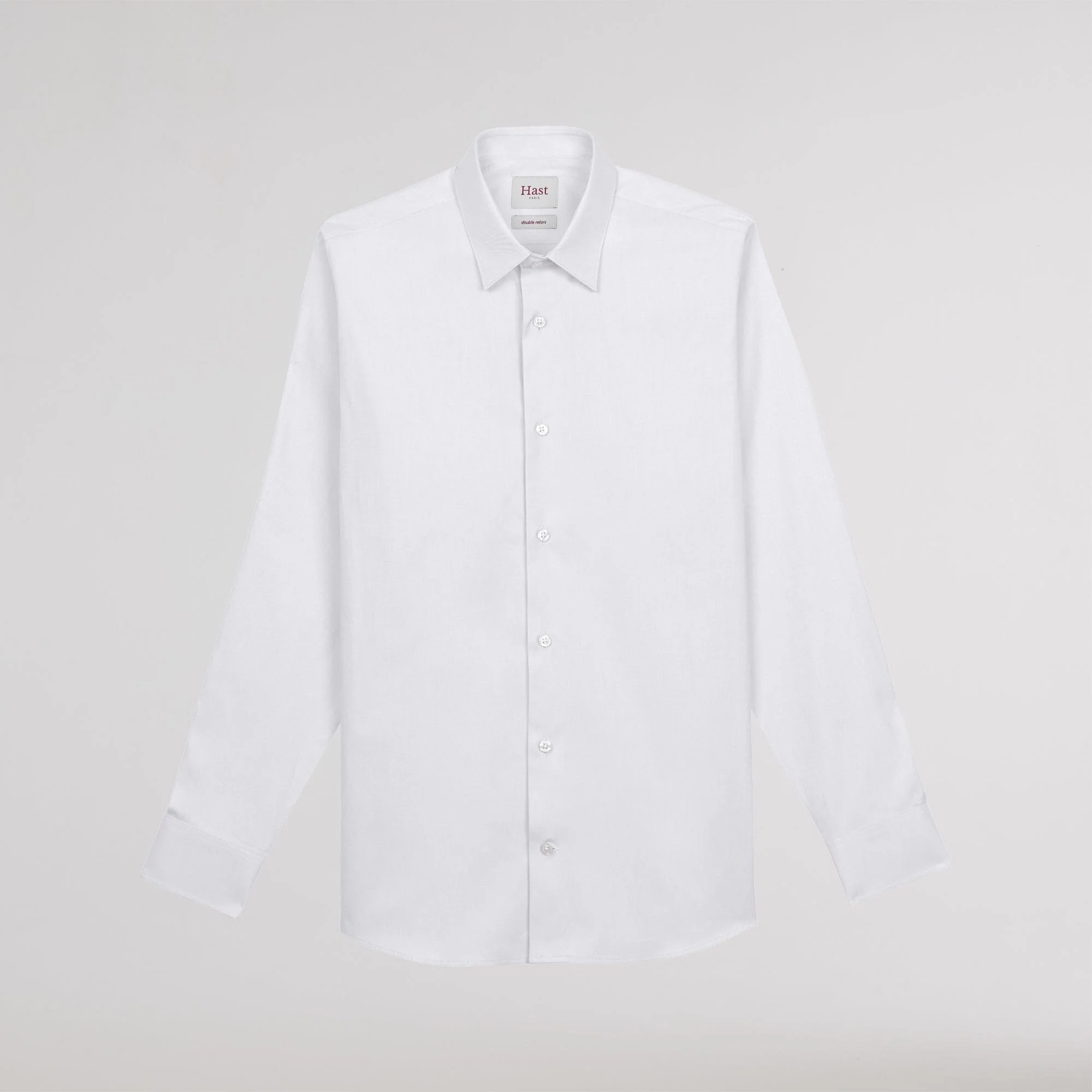 Symbole du style masculin intemporel, cette chemise blanche en oxford 100 % coton double retors se distingue par l’élégance de son col français et la justesse de sa coupe cintrée, qui met en valeur les morphologies fines.