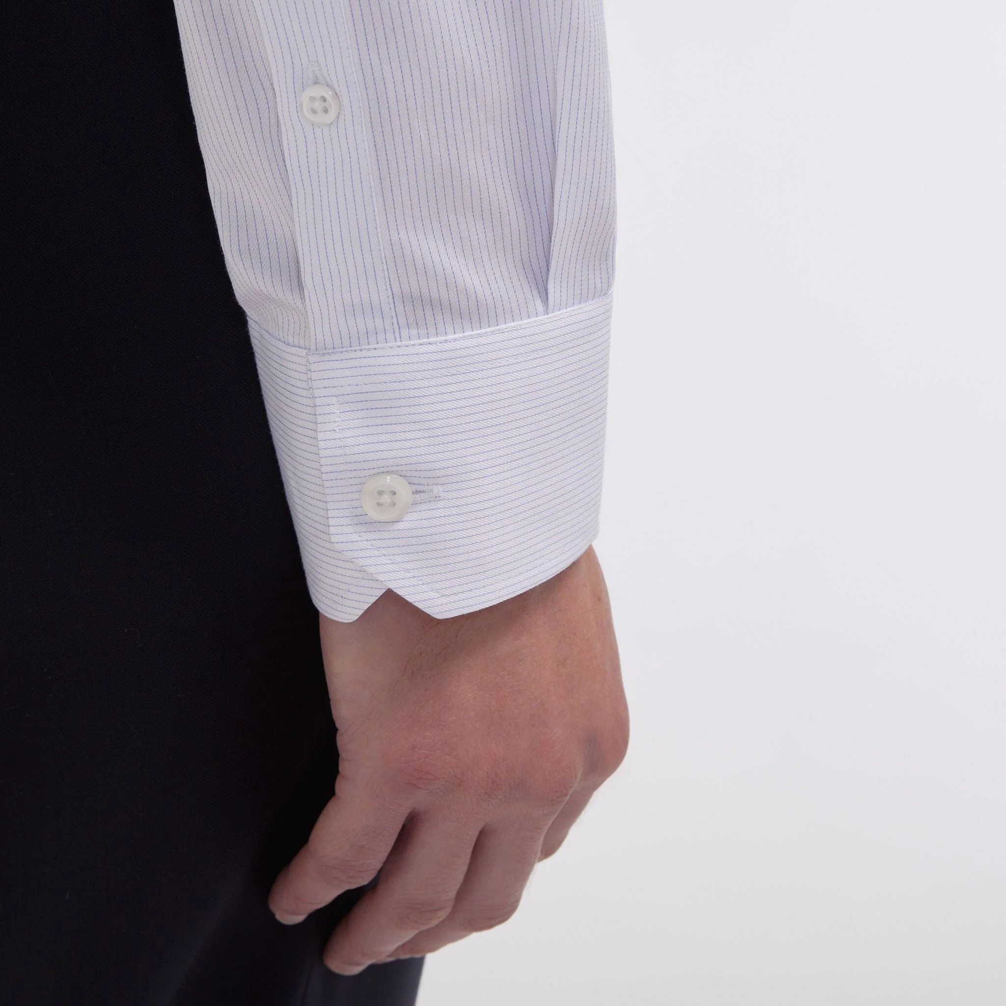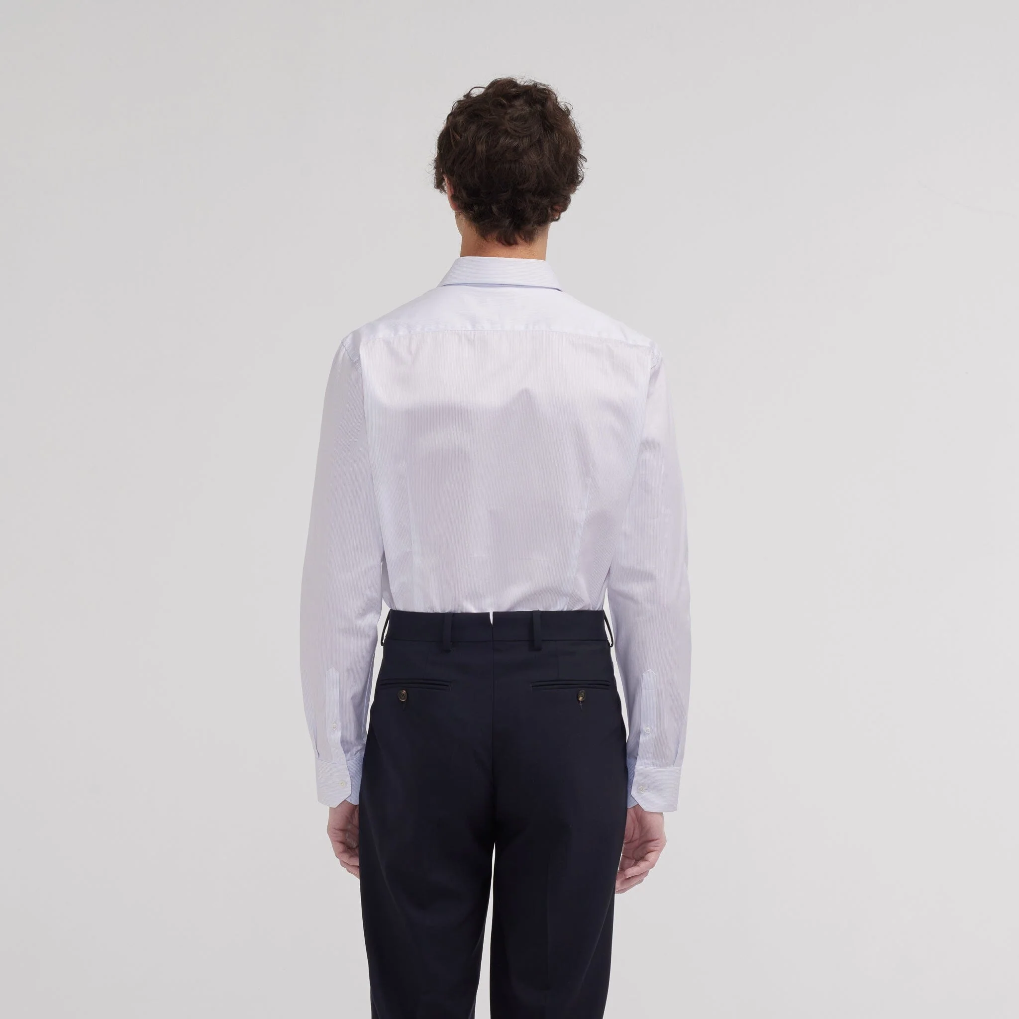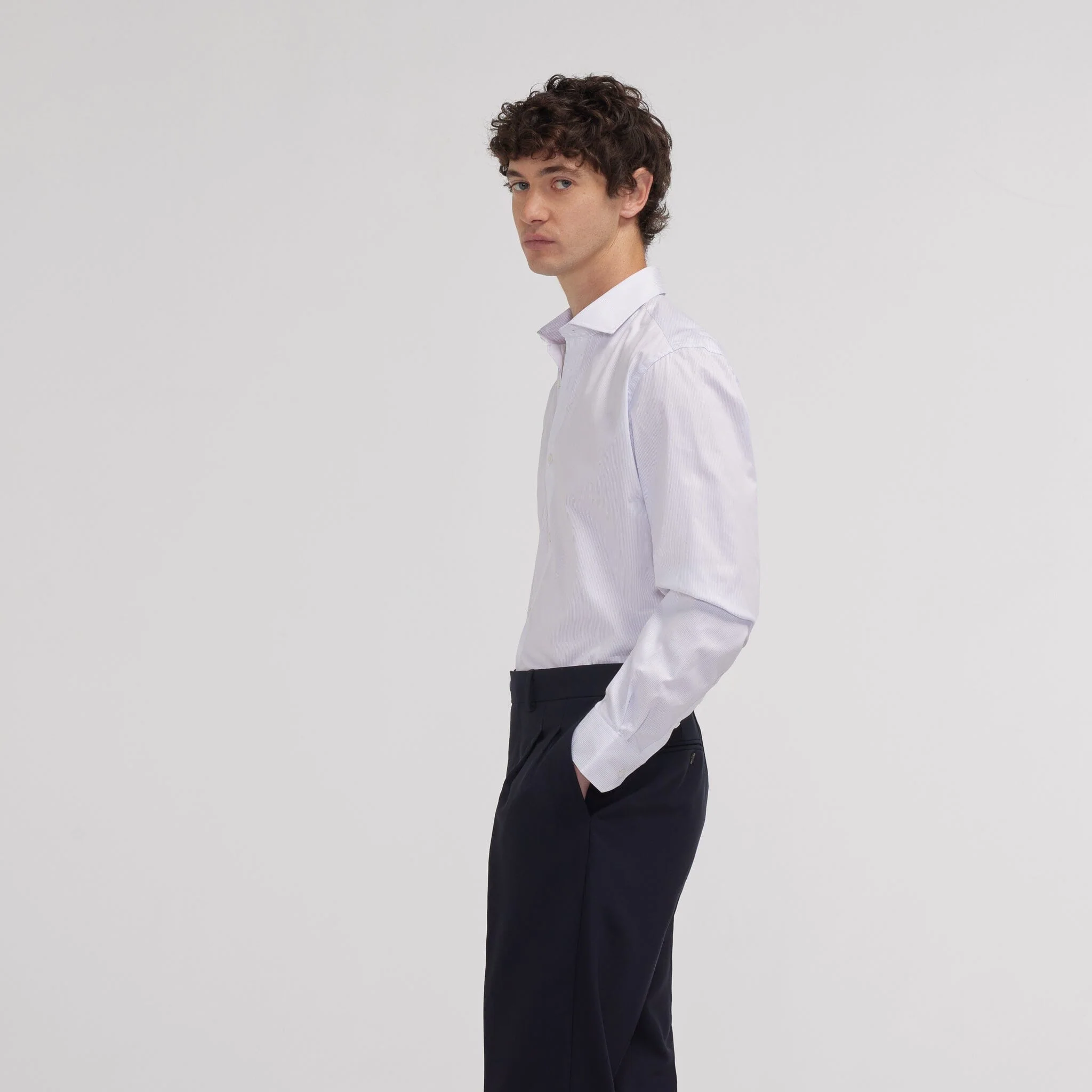 Soyez le premier à laisser votre avis sur “Chemise cintrée en twill double retors à fines rayures bleues”
