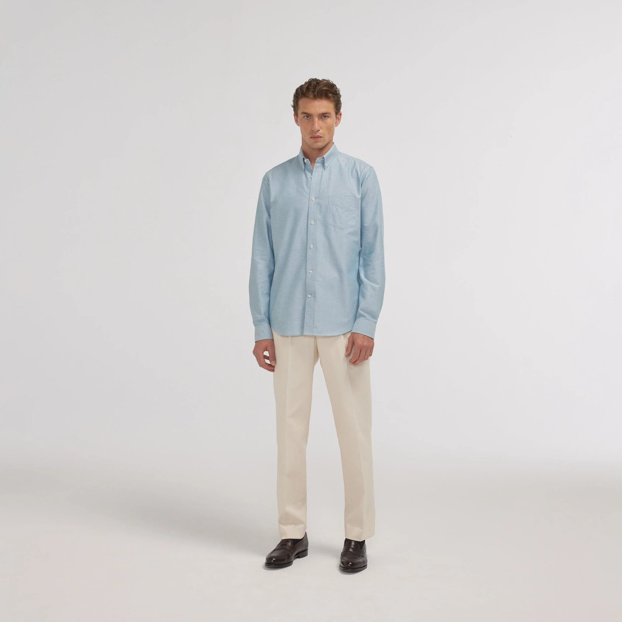 La chemise en oxford à col boutonné est un classique du vestiaire masculin. C’est la chemise la plus facile à associer avec vos différents vêtements. L’oxford est un tissu très résistant avec une belle texture. En vert, pour le côté lumineux.