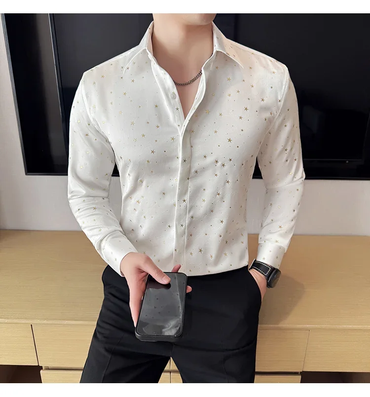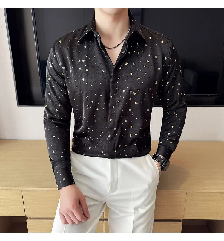 Cette chemise à paillettes Golden Star pour homme sera parfaite pour vos soirées festives, anniversaires, mariages et autres soirées de gala. Sa coupe cintrée mettra en valeur votre silhouette et accentuera votre sensualité, tandis que ses paillettes en forme d’étoile feront sensation et ajouteront de l’éclat à l’ensemble. Vous adorerez son allure étincelante !