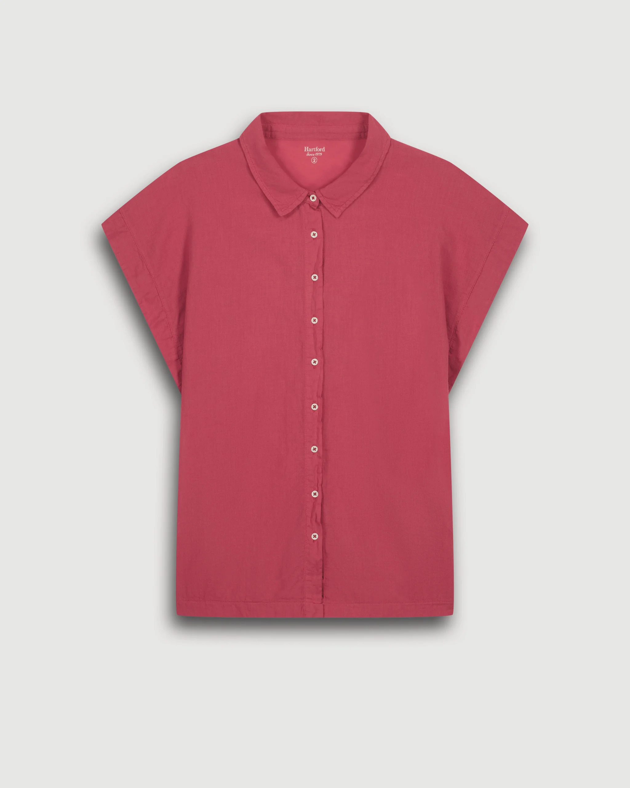 Chemise femme sans manches en coton bi-matière. Patte de boutonnage apparente.