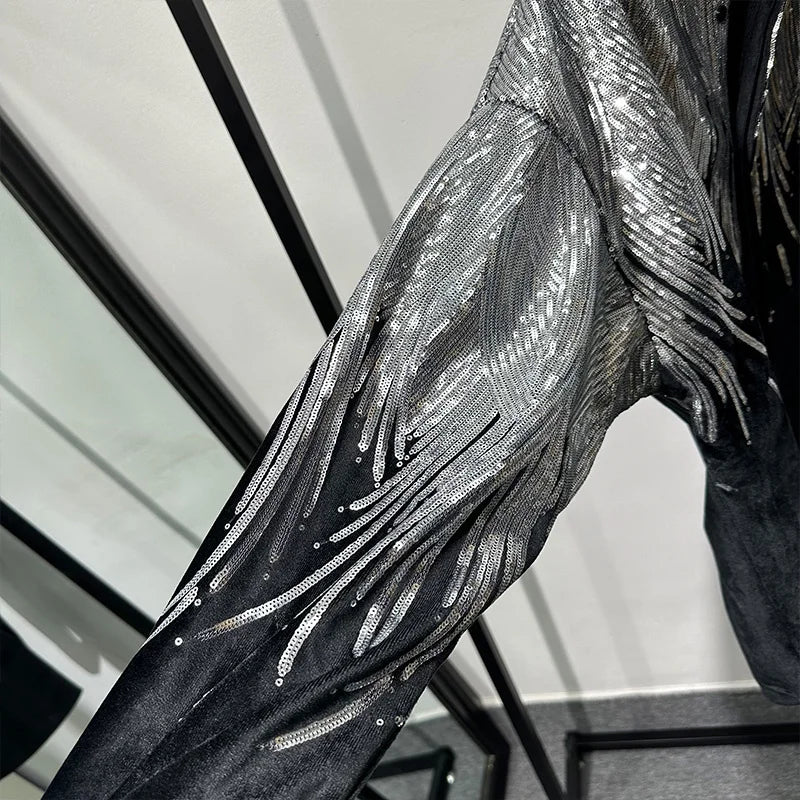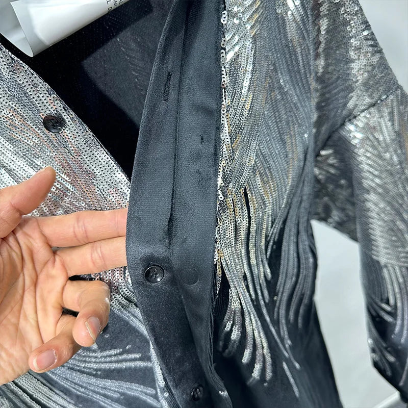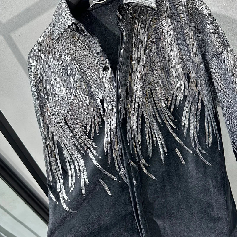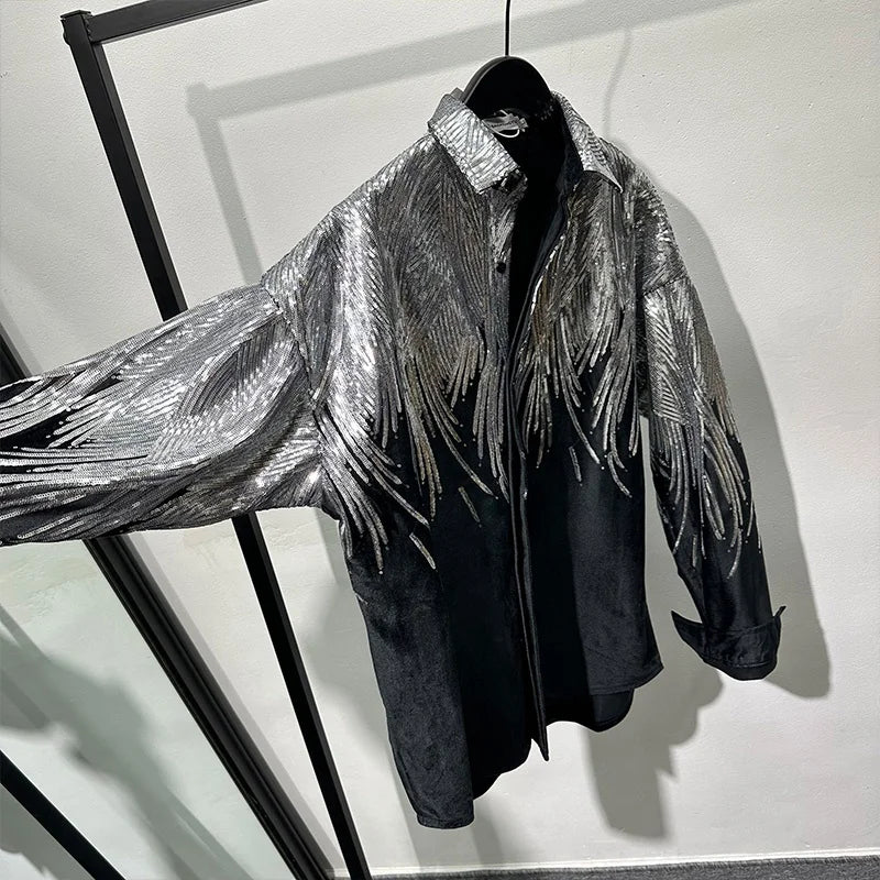 Cette chemise à ailes noires pailletées pour homme est absolument sublime. Elle vous donnera une allure chic et élégante pour vos sorties. Ses paillettes cousues main apportent une touche remarquable et vous donnent une allure sexy et distinguée. Une pièce incontournable pour vos réceptions et soirées festives. Affichez votre sex-appeal !