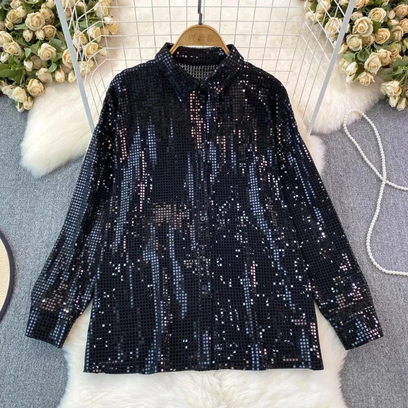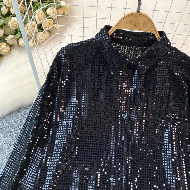 Cette jolie chemise paillette à petits carreaux apportera une touche de sophistication à tous vos looks. Elle possède de larges manches avec pli sur l’épaule et un biais aux poignets. Elle arbore un col classique et une fermeture par de petits boutons. C’est un haut à porter avec un pantalon de smoking, idéal pour les fêtes de fin d’année et toutes les occasions festives.