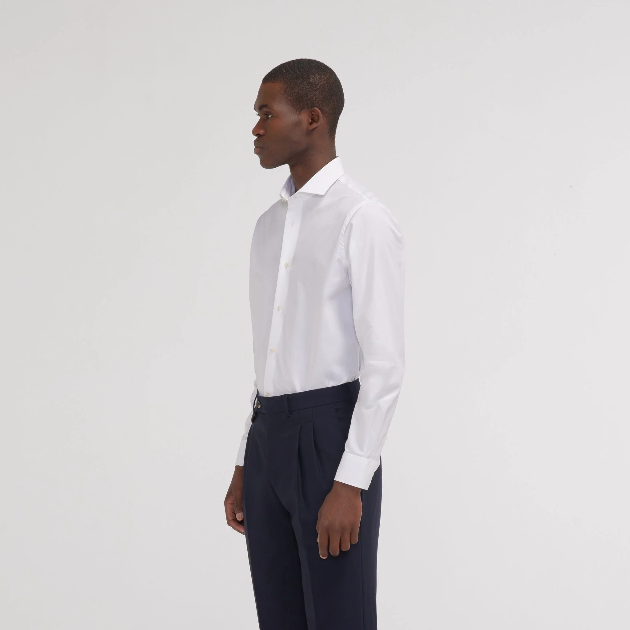 Cintrée, blanche, et infroissable : notre chemise premium cintrée en pinpoint blanche double retors s’approche de la perfection. Une chemise avec un tissu provenant d’une maison italienne renommée et des finitions haut de gamme à porter avec un costume et une cravate en soie pour une élégance absolue.