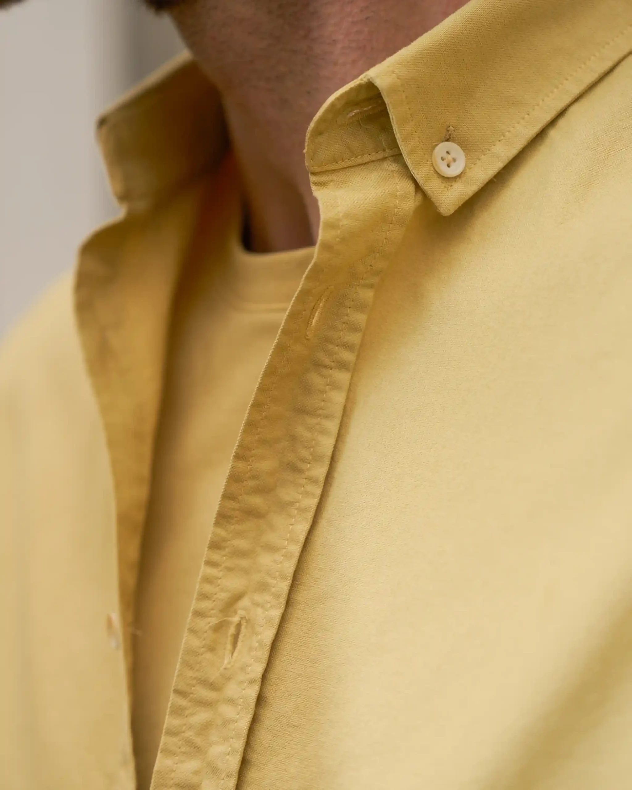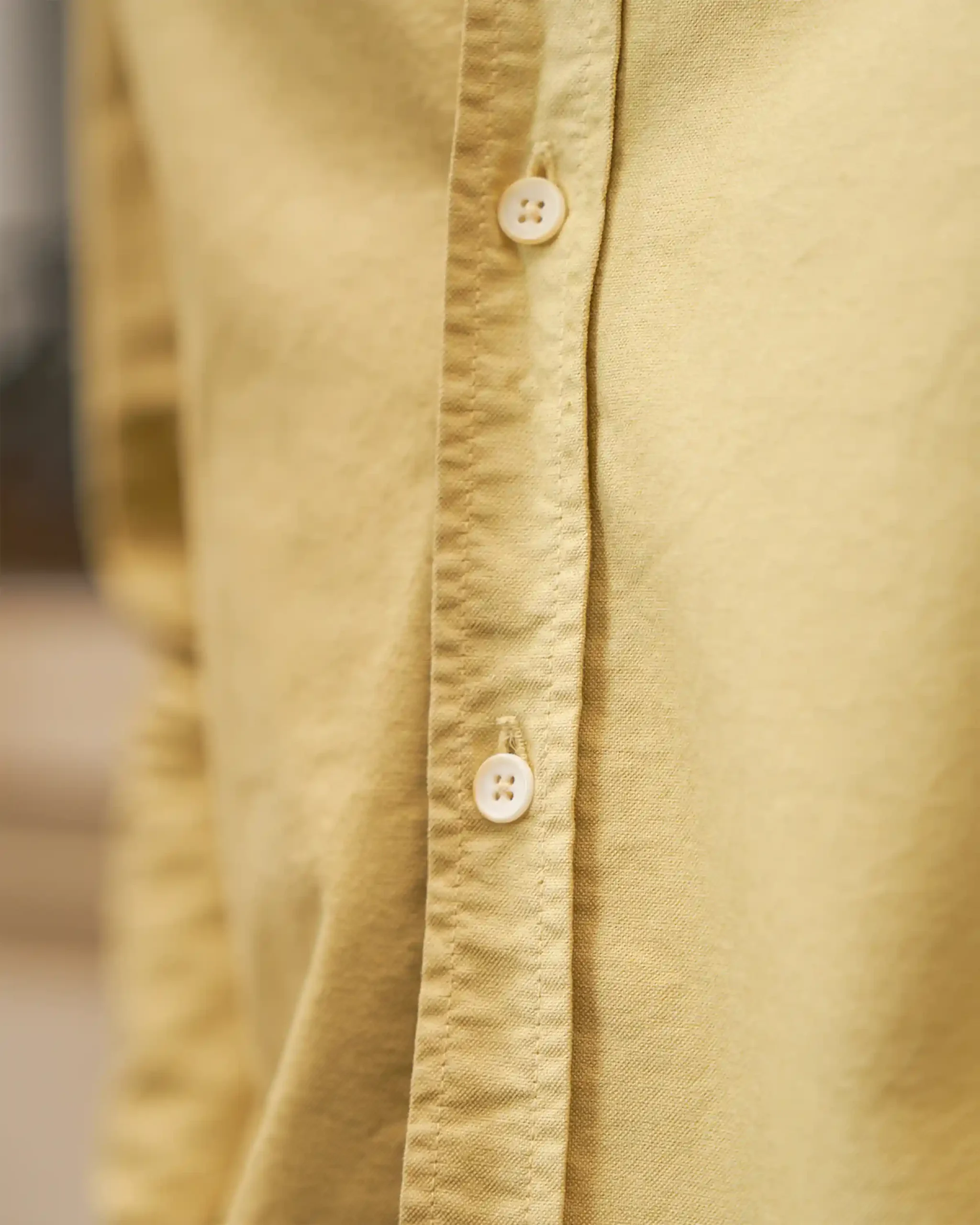 Chemise Dylan, en twill beige à col classique. Une coupe et des détails inspirés des chemises de la navy américaine avec deux grandes poches boutonnées. Elle se porte décontractée, seule ou sur un tee-shirt, rentrée dans un pantalon. Confectionnée dans un twill de coton avec une touche de lycra, c’est la chemise la plus cool de votre garde robe.
