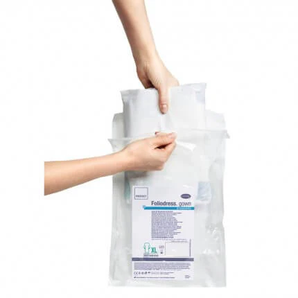 La blouse chirurgicale Foliodress Gown Comfort Renforcée de Hartmann est idéale pour les opérations impliquant de grands volumes de liquide, grâce à ses zones renforcées résistantes aux liquides au niveau de la poitrine et des aisselles. Son matériau multicouche offre une résistance élevée contre les infiltrations et la transmission de germes, tout en étant bien ventilé et offrant un grand confort. Le système de fermeture Combitape® permet de fermer rapidement et simplement la blouse pour un ajustement parfait en une seule étape.