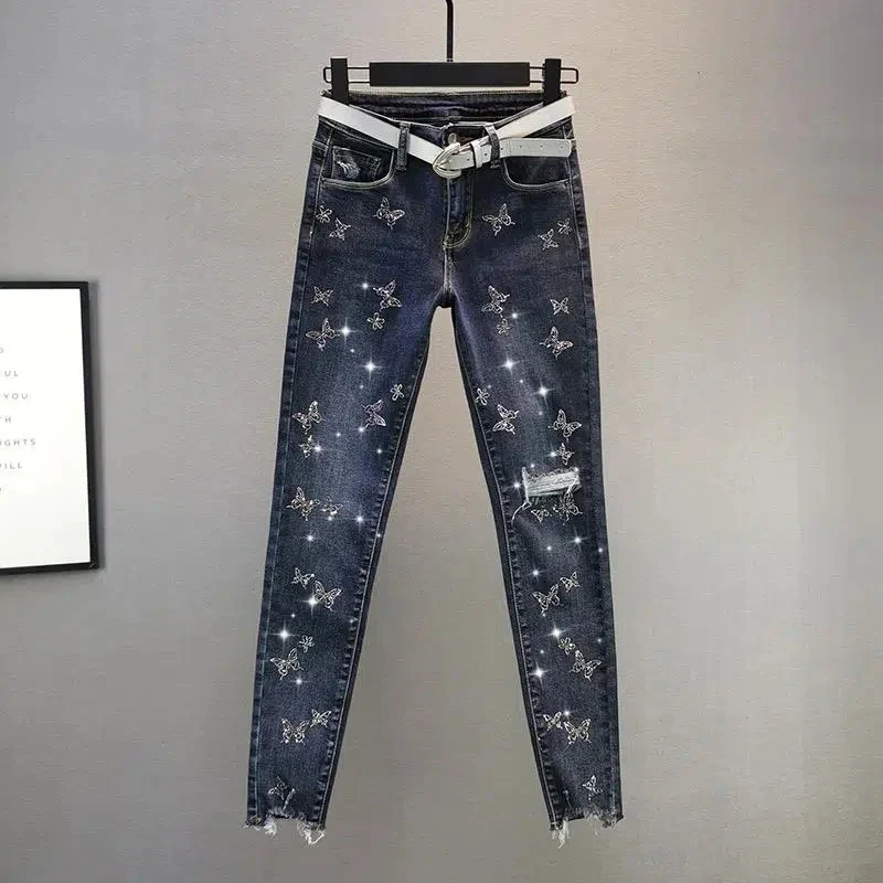 Le jean strass papillons incarne l’élégance dans sa simplicité. Avec sa coupe slim, il met en valeur votre silhouette de manière flatteuse tout en assurant un confort optimal grâce à son tissu stretch. La particularité de ce jean réside dans son ourlet découpé au laser, une touche moderne qui ajoute une subtile dose d’originalité à ce classique intemporel.