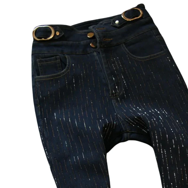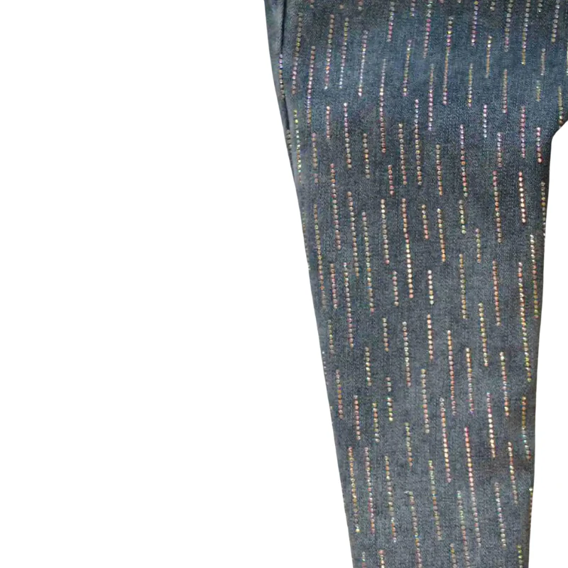 Extrêmement extensible et moulant, ce jean skinny Strass pour femme met en valeur vos formes et sublime votre silhouette. Vous apprécierez l’effet pailleté pour une touche tendance qui rehaussera votre tenue avec finesse. Il existe également en version doublée polaire pour rester glamour même en hiver.