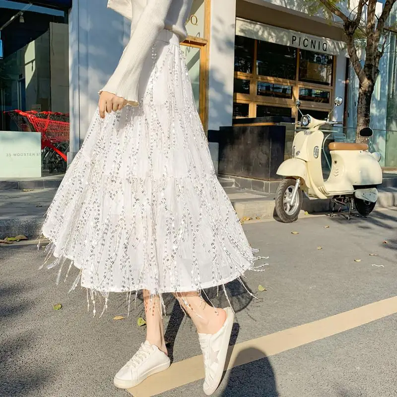 Soyez le premier à laisser votre avis sur “Jupe Paillette Franges Taille Haute”