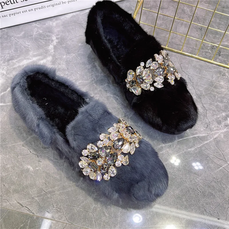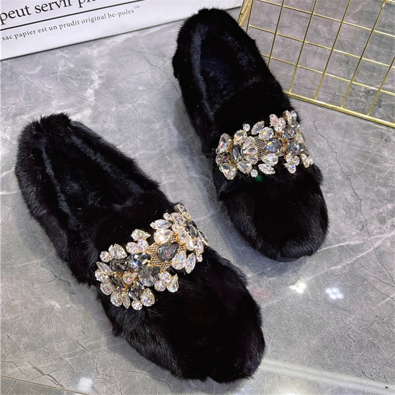 Si vous cherchez des mocassins en fourrures avec strass, chics et chauds pour compléter votre allure d’hiver, ne cherchez plus ils sont faits pour vous. Avec leur allure classique et sophistiquée , ces mocassins sont également très polyvalents. Ils peuvent être portés à l’extérieur ou à l’intérieur.