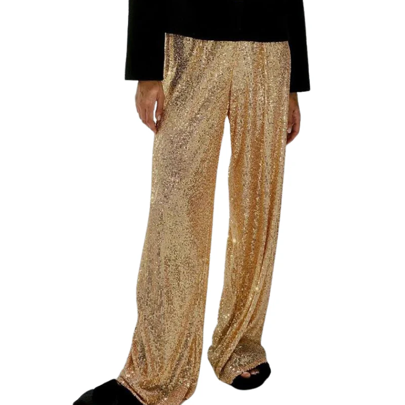 Craquez pour notre pantalon à paillettes pour femme en stretch noir pailleté. Vous l’aimerez pour sa coupe stretch large et son style pailleté festif. Avec ce pantalon, vous vous assurez un look ultra-sophistiqué, parfait pour une soirée glamour. Pour un look maîtrisé, rien de tel que quelques accessoires pour rehausser votre tenue.