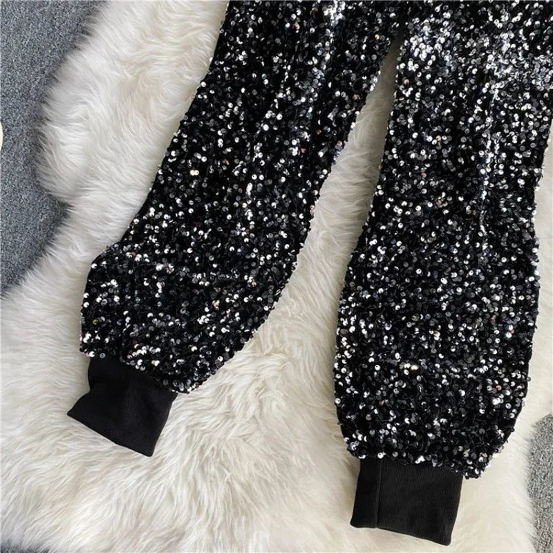 Soyez à l’aise dans ce pantalon Paillette Velours, parfait pour montrer votre éclat même en faisant du sport. Vous adorerez son look à la fois décontracté et étincelant. Il offre un grand confort avec une taille et des chevilles élastiques pour un bon maintien et une grande aisance de mouvement.