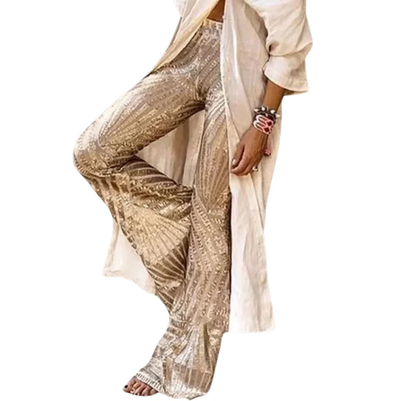 Ce pantalon à paillettes pour femme est l’incarnation du glamour et du style vintage. Orné de paillettes scintillantes, il attire la lumière à chaque pas, créant un look éblouissant. La silhouette à jambes larges ajoute une touche de sophistication et d’élégance, ce qui le rend parfait pour une sortie ou une soirée en ville. Rehaussez votre tenue et faites-vous remarquer avec ce pantalon à paillettes éblouissant.
