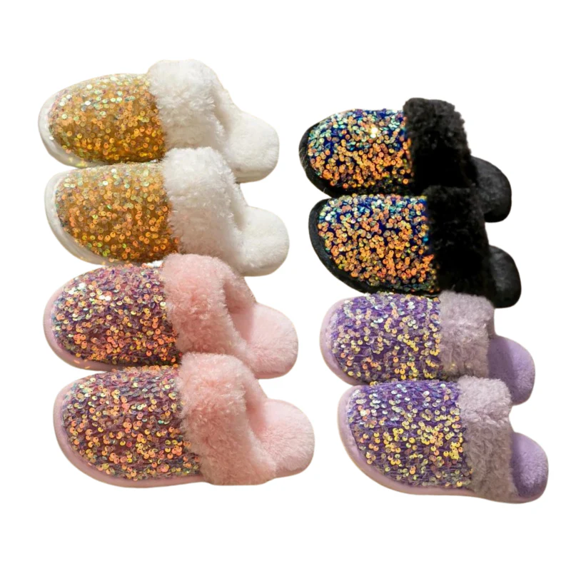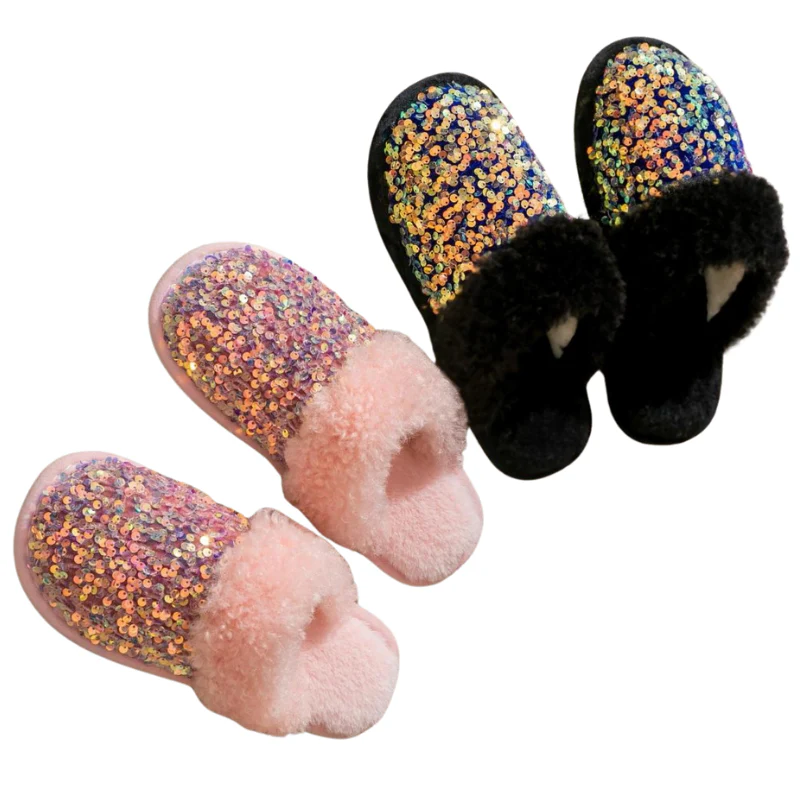 Craquez pour notre paire de chaussons pailletés en fausse fourrure. Douillettes et féminines, elles vous permettront de rester au chaud cet hiver. Douillettes et confortables à l’intérieur, elles sont parfaites pour les soirées cocooning. Vous aimerez leur matière douce et leur semelle textile antidérapante.