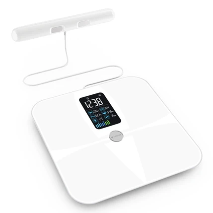 • Grand écran couleur VA, affiche intuitivement 8 composants corporels de base, y compris le poids, l’IMC, la graisse corporelle, l’eau corporelle, la masse musculaire, la masse osseuse, l’âge corporel et la forme du corps. Les résultats sont lus instantanément, sans qu’il soit nécessaire de connecter l’APP à plusieurs reprises