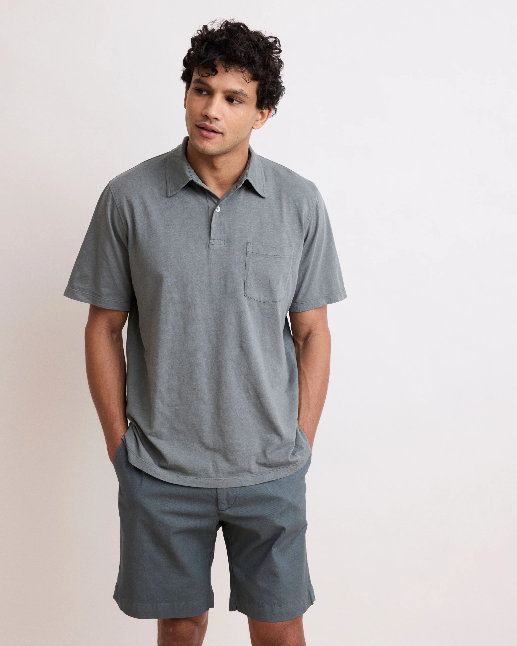 Polo homme en maille jersey à manches longues avec col à deux boutons, poche poitrine et poignets chemises ajustables.
