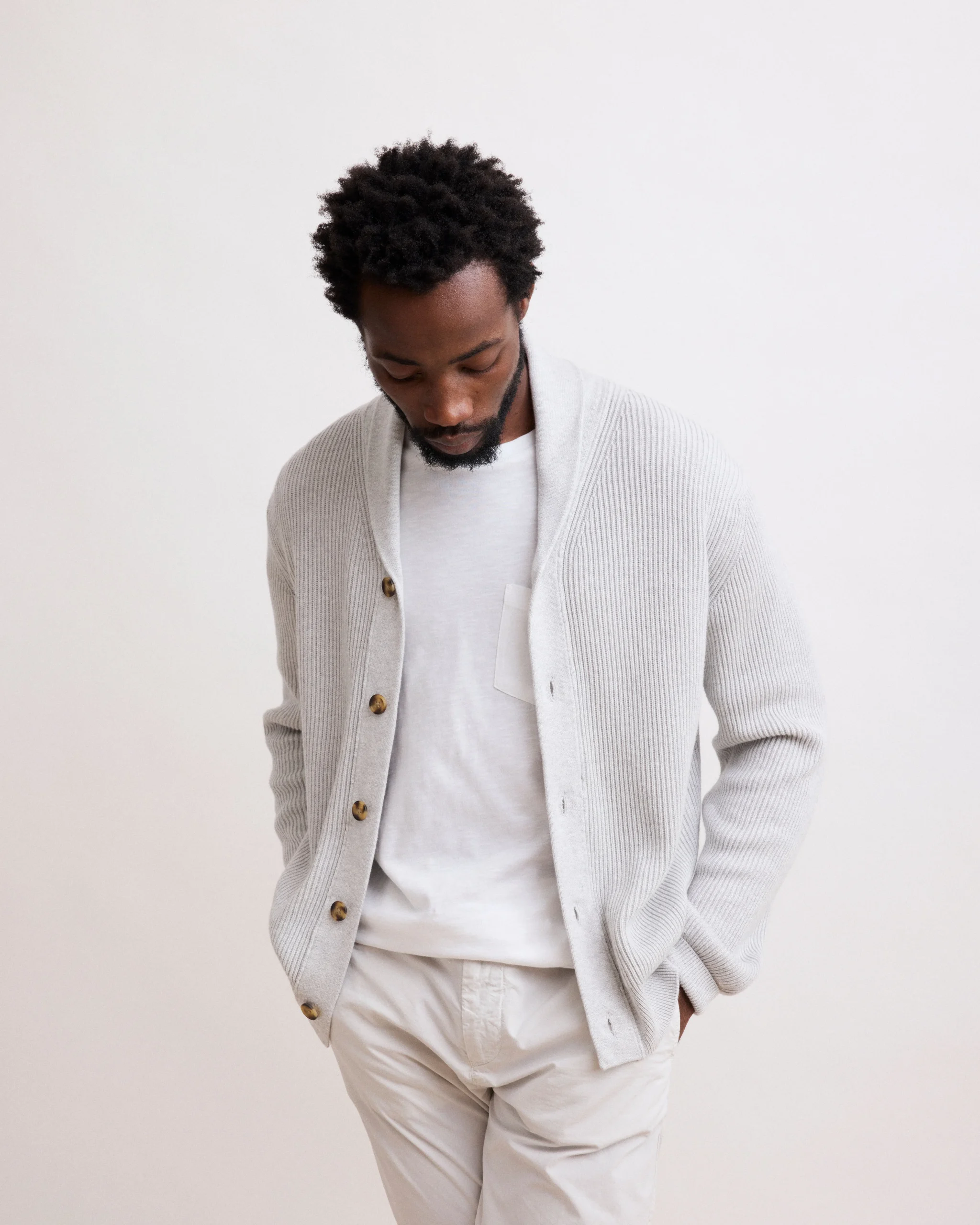 Pull femme ample à col montant. Détails de jeux de côtes aux manches, au col et en bas de vêtement.