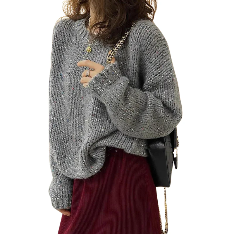 Ce pull en laine à paillettes pour femme présente un col rond classique, orné de paillettes scintillantes qui ajoutent une touche d’élégance et d’éclat vintage, créant un effet éblouissant et accrocheur, parfait pour ajouter une touche de chaleur à n’importe quelle tenue. Ce pull orné de paillettes ne manquera pas de faire sensation et d’enrichir votre garde-robe grâce à son mélange de charme classique et d’ornements simples mais sophistiqués.