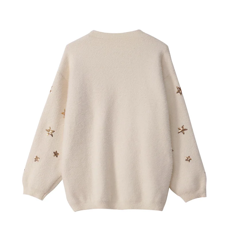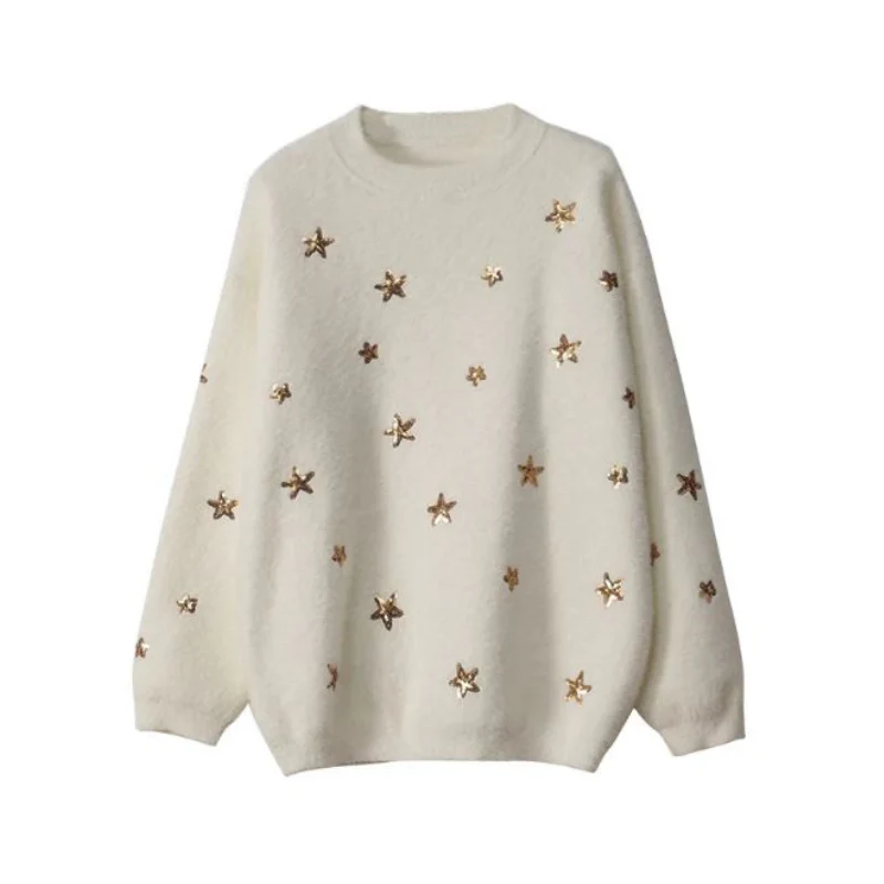 Son motif étoilé pailleté ajoute une touche vintage et street au pull, ce qui en fait une pièce à part dans votre garde-robe.