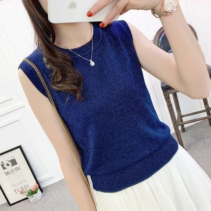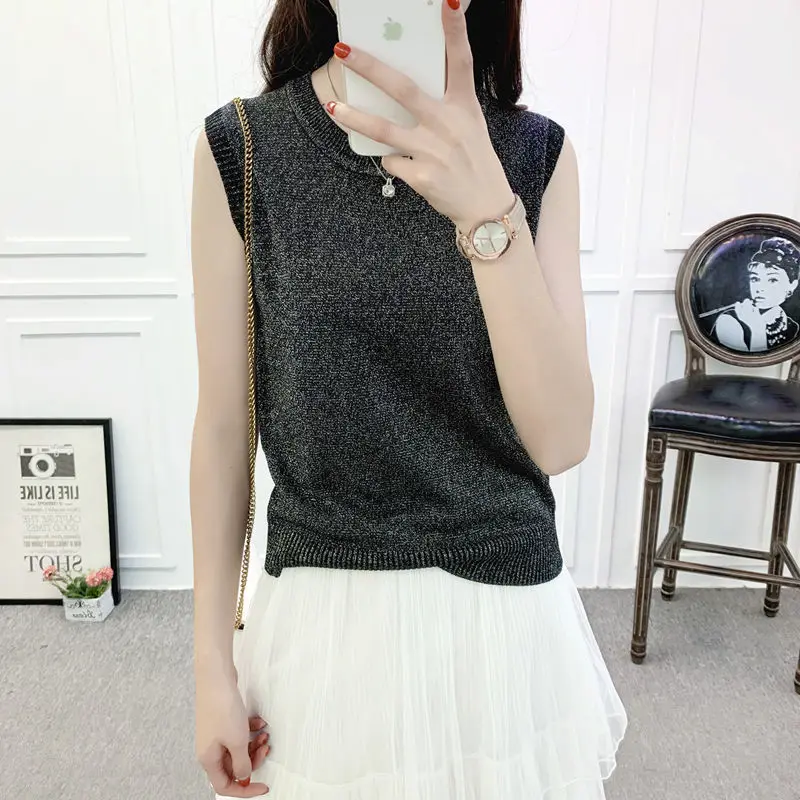 Ce joli tee-shirt sans manches a été confectionné avec des fils de paillettes qui lui donnent un caractère rétro audacieux avec une encolure arrondie. C’est un style moderne qui peut se porter avec un jean taille haute et une paire de baskets.